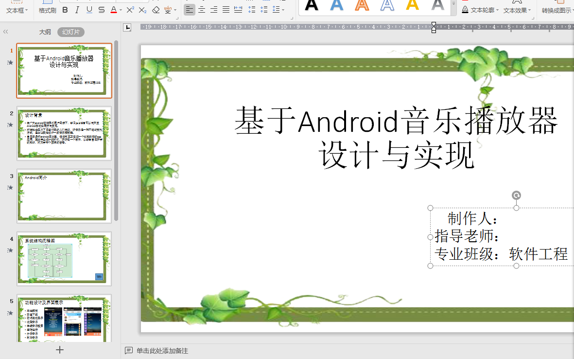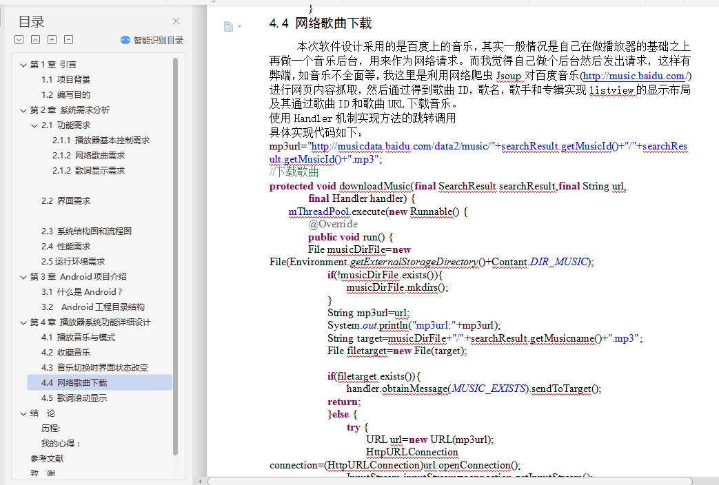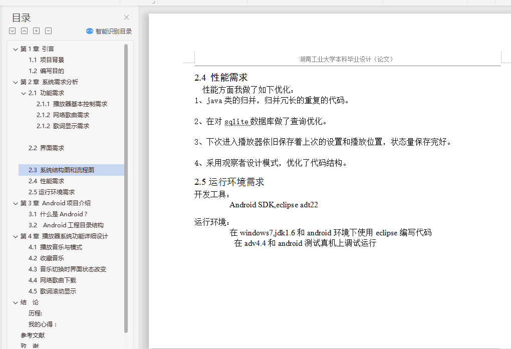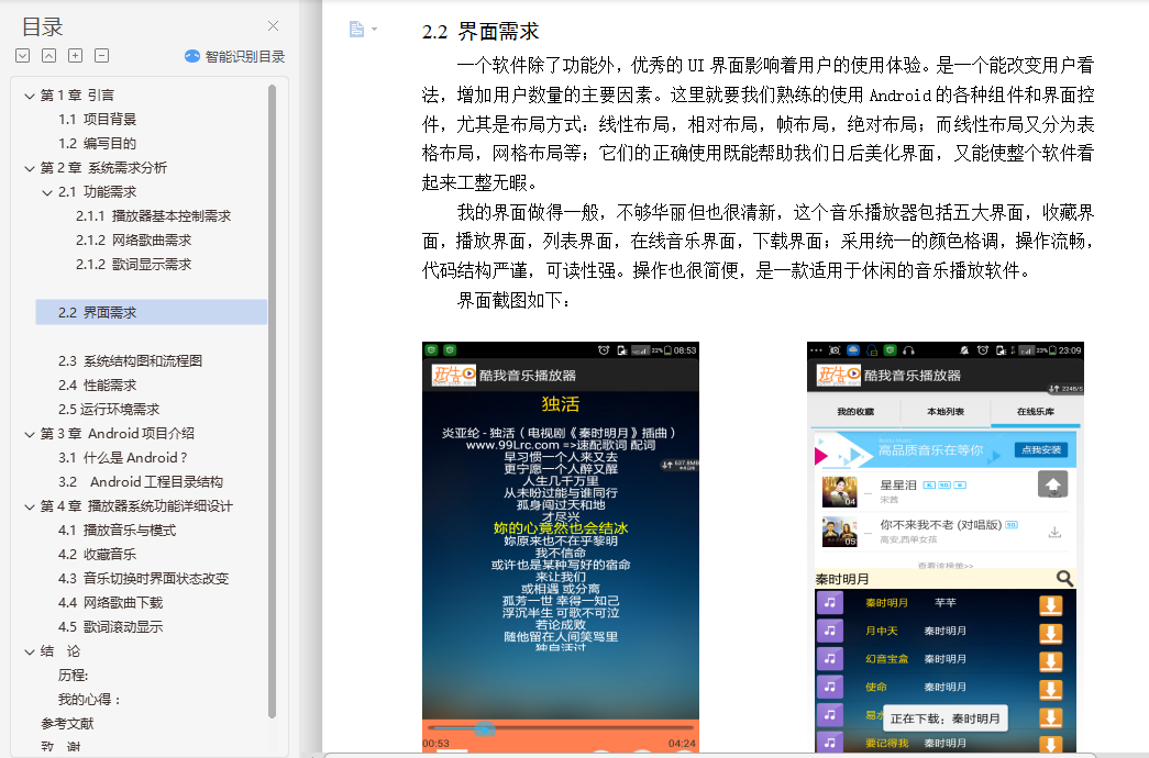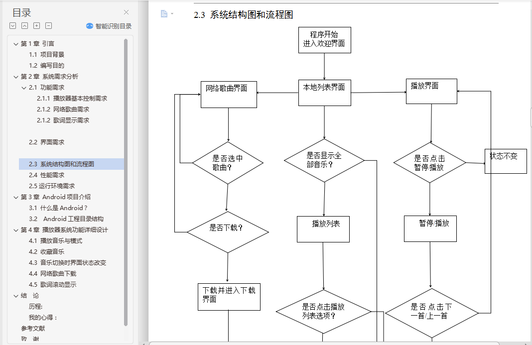 Android是一个开源的系统,它底层是基于Linux的操作系统,本论文的音乐播放器采用了Android开源系统技术,利用Java语言和Eclipse编辑工具对播放器进行编写。同时给出了详细的系统设计过程、部分界面图及主要功能运行流程图,本文还对调试过程中遇到的问题和解决方法进行了详细的讨论。