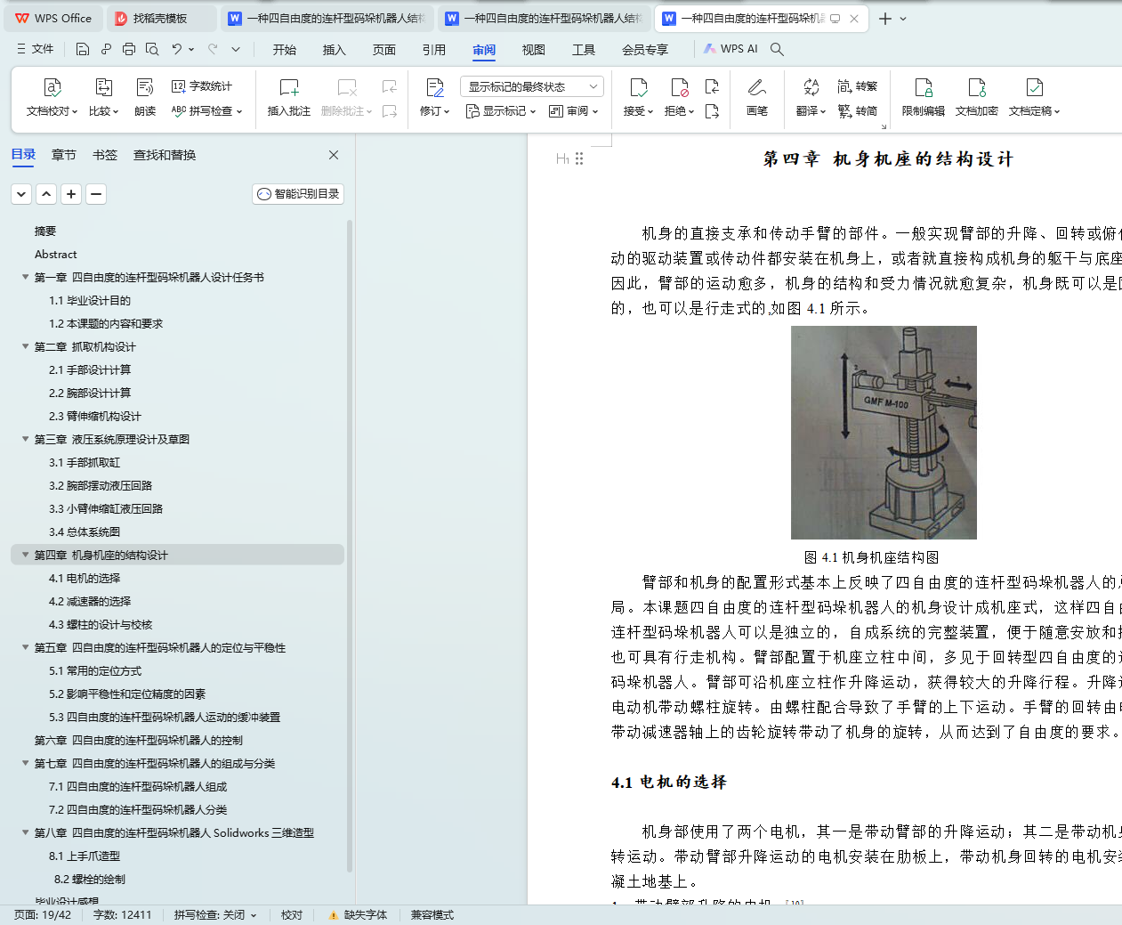Key words: palletizing robot; four degrees of freedom; link structure; mechanical design; 3 D modeling; Solidwork;