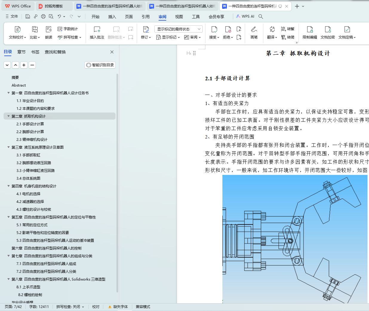 本文设计了一种四自由度的连杆型码垛机器人结构,包括腰座、底座、臂部、腕部等关键结构的详细机械设计。我们对驱动电机进行了计算选型,并对机器人进行了总体和关键部件设计。通过建立三维模型,我们成功地在Proe/Solidwork完成了三维建模及装配,并输出了四自由度的连杆型码垛机器人的装配图纸及关键部件的工程图纸。