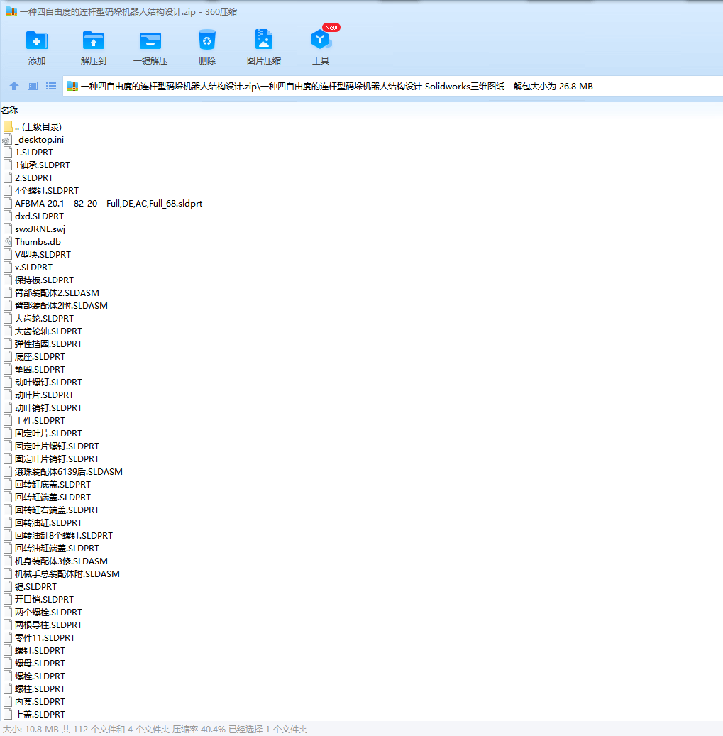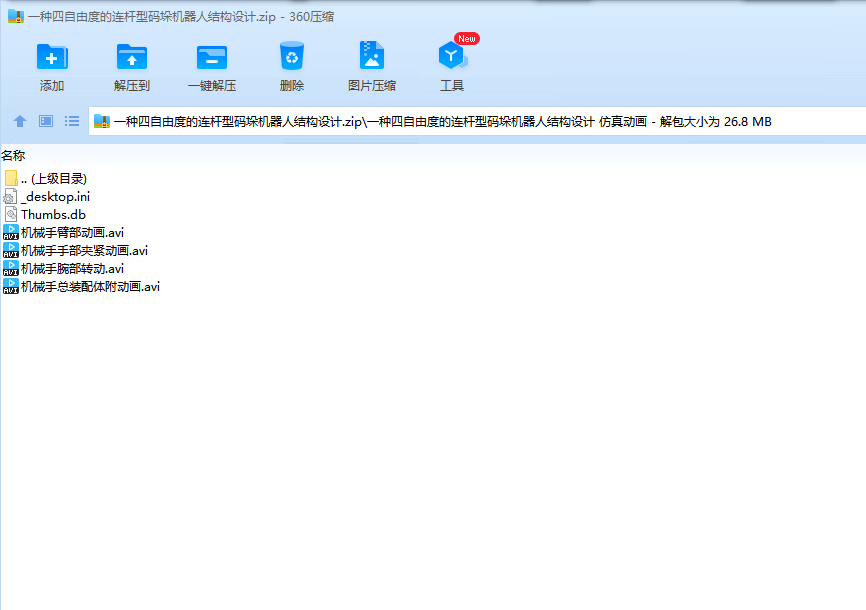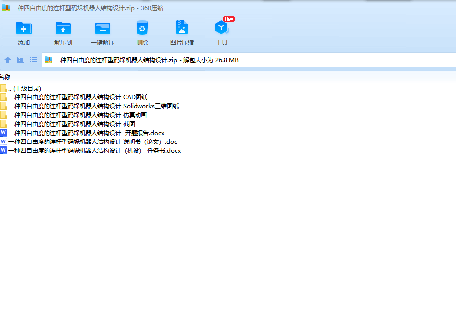 关键词:码垛机器人;四自由度;连杆型结构;机械设计;三维建模;Solidwork;