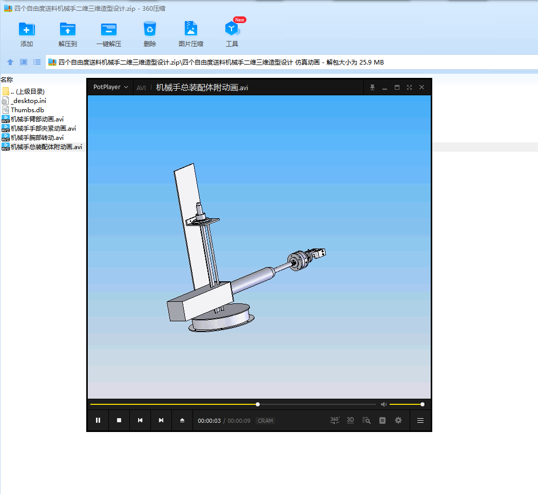 We performed computational selection of the drive motor and the overall and key component design of the robot. By establishing the 3 D model, we successfully completed the 3 D modeling and assembly in Proe / Solidwork, and output the assembly drawings of the four-degree linkage stacking robot and the engineering drawings of key components.