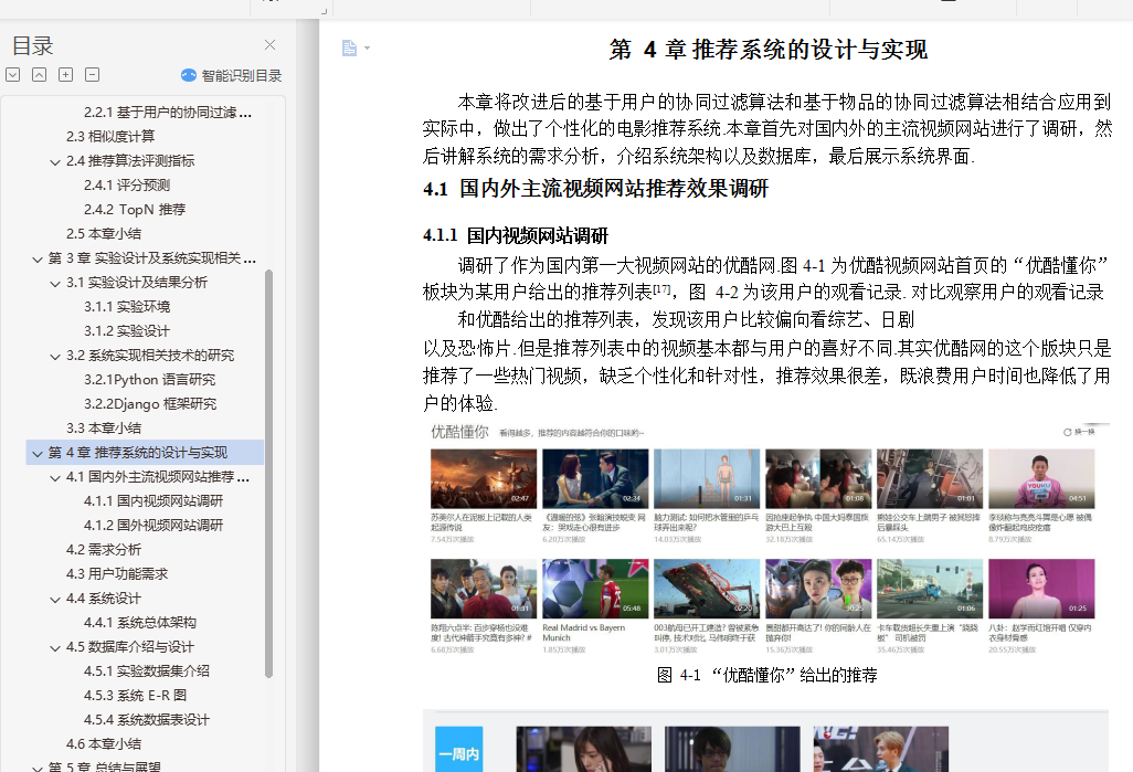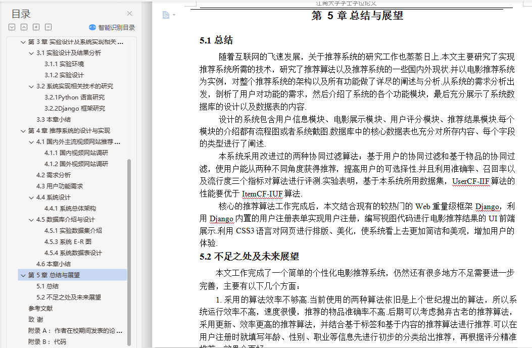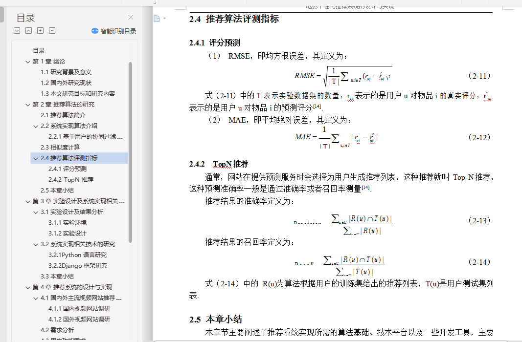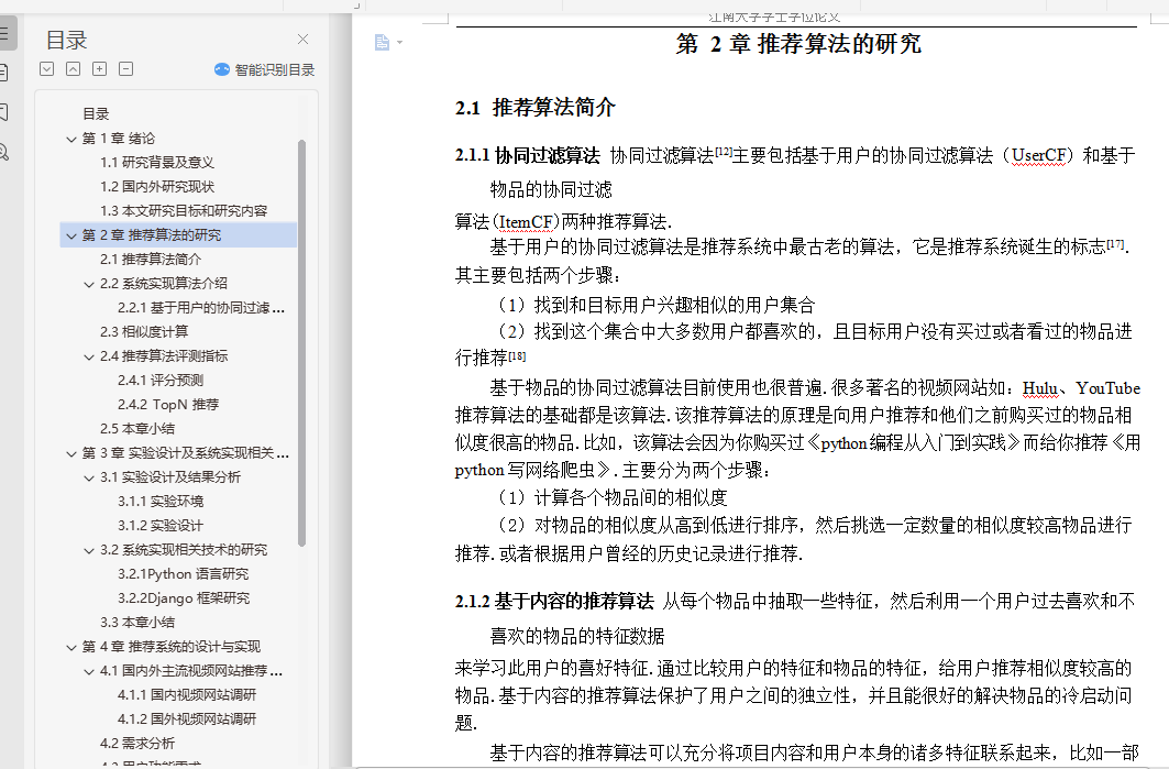 论文首先阐述推荐系统的研究现状以及意义,随后介绍了相关的推荐算法,重点介绍 协同过滤算法,并对系统实现所需技术进行了研究,接着介绍了整个推荐系统的实现,最 后对整个项目进行了回顾与总结.