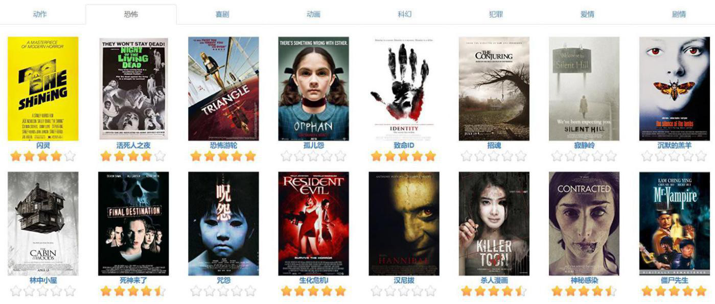 整个系统涉及到的编程语言包含Python、Html5、JQuery、CSS3以及MySQL数据库编 程.用到的框架是Django重量级web框架,通过该框架连接系统的前、后端.用户首先需要 填写用户名、密码以及邮箱注册系统,然后才能登陆推荐系统.进入首页后会看到8个电影 分类,包括恐怖片、动作片、剧情片等.用户需要给自己看过的电影进行评分,评分起止 为0.5-5.0分,共10个分段.每评价一部电影就要点击一下提交按钮,将所评分的电影的 imdbId号以及对应的评分存入数据库中.用户点击“推荐结果”按钮,系统就调用推荐算法 遍历数据库所存数据,得出推荐列表之后将结果反馈给浏览器,同时调取数据库所存电影 海报图片进行展示.用户点击自己登陆的昵称,会跳转页面显示自己已经评价过的电影.