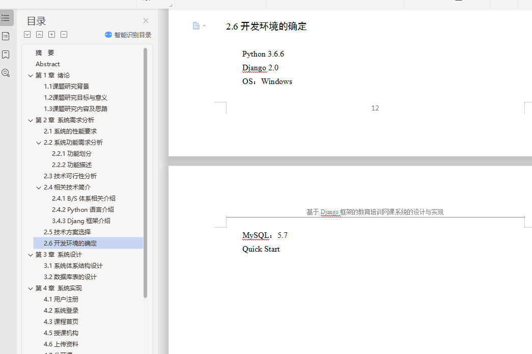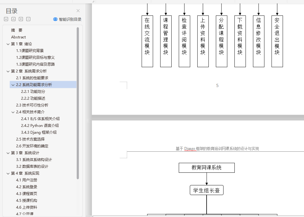 基于Django框架的教育网课系统的设计与实现采用文献法和软件开发方法以及原型法(查找并借鉴别人已经实现的Django框架系统平台。研究技术采用的后台架构模式是Django的MTV设计模式。选择的开发工具和服务器几乎都是开源免费,因此经济上是可行的。根据市场需求分析,这个项目是有市场需求的,因此很有市场前景。