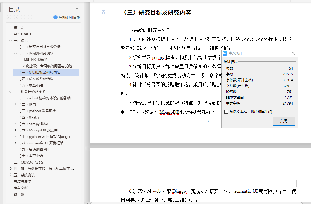 关键词:scrapy;Django;非结构化数据库;数据可视化