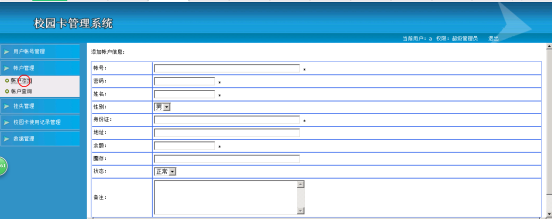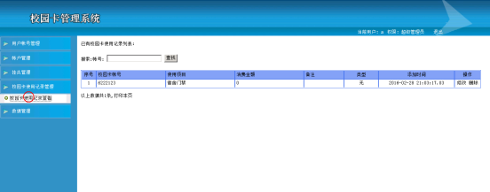 This thesis is a simple Web application model, complete a campus id management, the system is available for two kinds of users, respectively is ordinary users and administrators. The function of the administrator user account management, account management, report the loss of management, campus card use records management, data management several big functions, ordinary users can realize user account management, campus card use (include query balance, circle, consumption, cash, check, entrance guard, to check the record), two big functions. Implements dual data management of users and administrators. Provides a good platform for the IC card management.