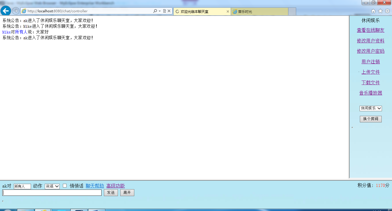 该聊天室系统由用户注册、用户登录、聊天室的选择、主聊天室以及相应修改、帮助功能组成。使用Java编程语言集合JSP、JavaBean、Servlet技术完成系统的整体设计,以MyEclipse为平台,Tomcat为服务器。