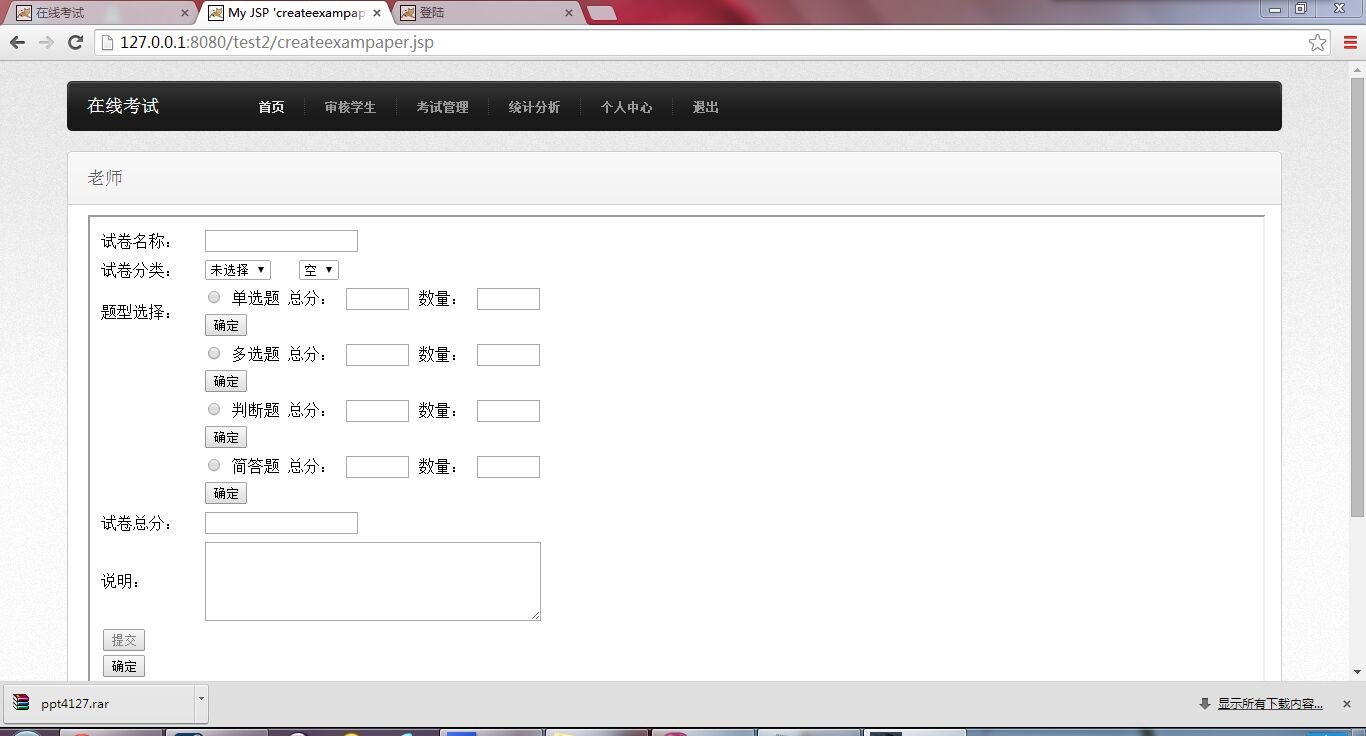 Keywords: test papers;automatic generation;examination system;test papers;results;statistics