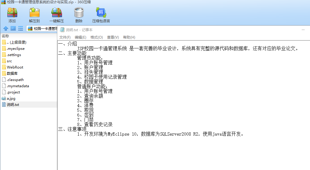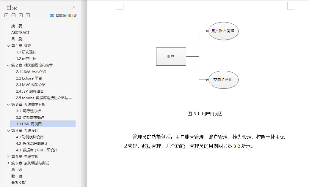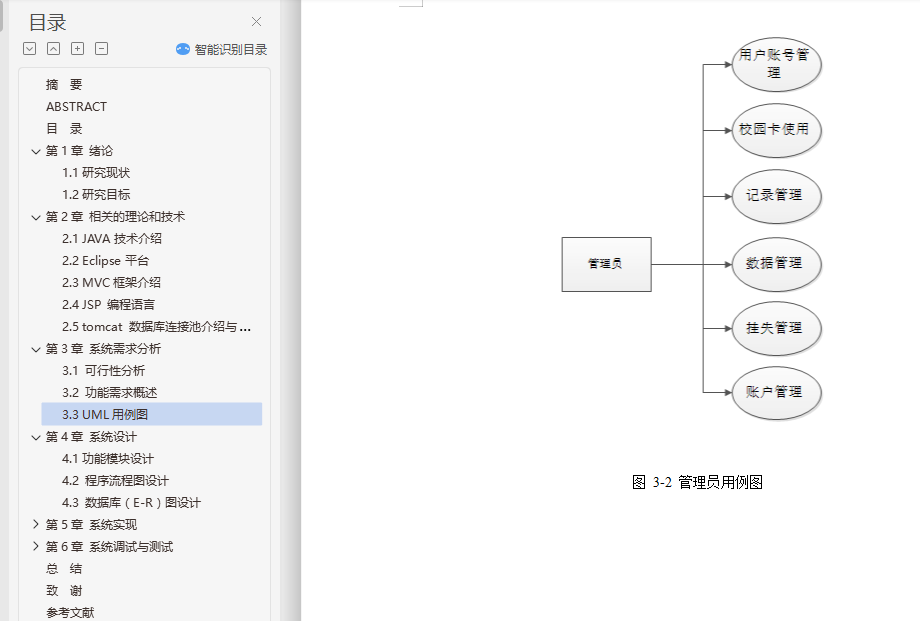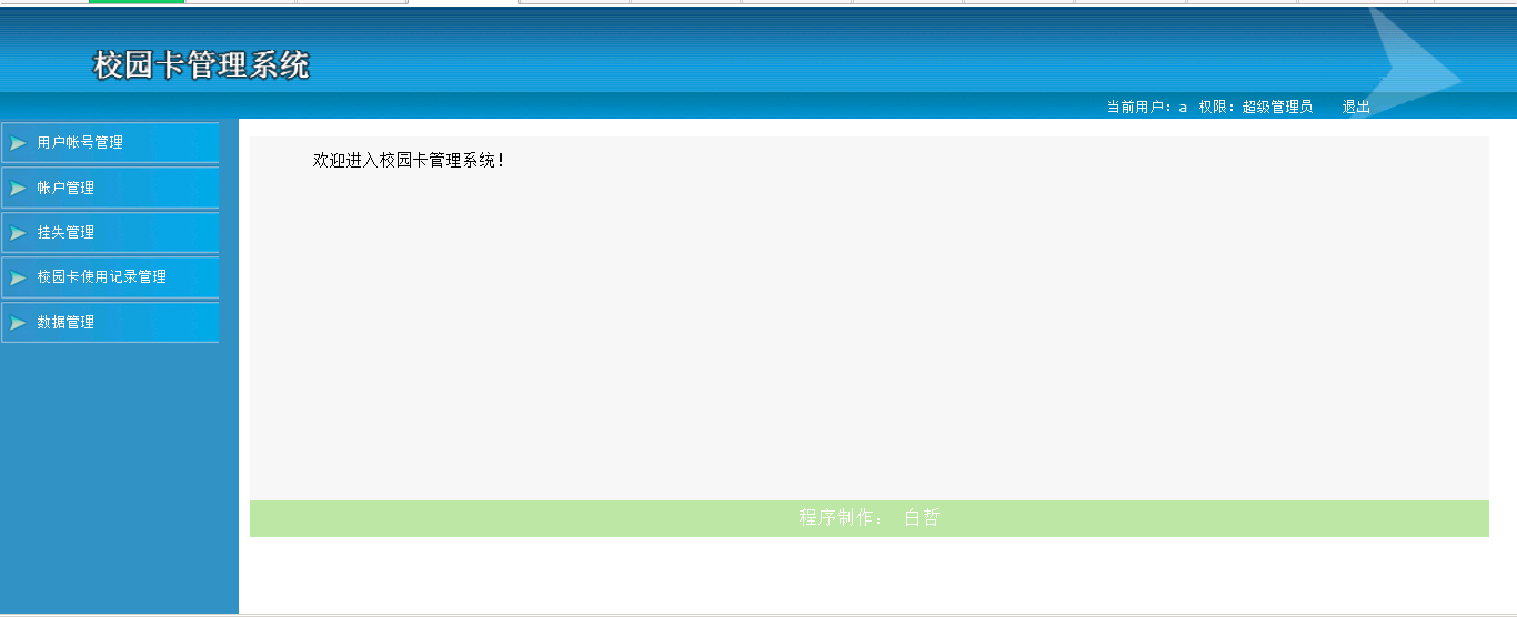 本论文论述的是一个简化的Web应用程序模型,完成一个校园一卡通管理,该系统可供两种用户使用,分别是普通用户和管理员。管理员的功能有用户账号管理,账户管理,挂失管理,校园卡使用记录管理,数据管理几大功能,普通用户可以实现用户账户管理,校园卡使用(包含查询余额,圈存,消费,取现,签到,门禁,查看历史纪录),两大功能。实现了用户和管理员的双重资料管理。提供了一个良好的一卡通管理平台。