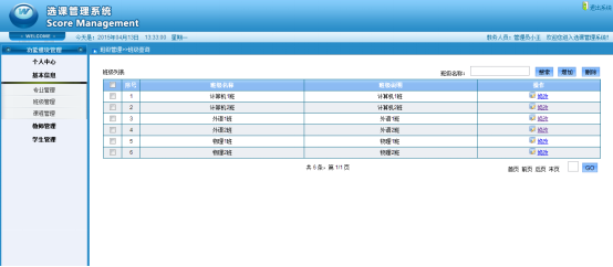 网上选课系统所应包括的基本功能包括对教师、学生、课程等基本信息,学生选课以及教师操作的管理。本系统对学生提供个人信息维护,选课以及查看所选课程的信息、出勤和成绩等功能;对教师提供个人信息维护,查看自己的课程信息,登记学生的出勤和成绩等功能;管理员可以对所有的学生、教师、课程、专业、班级的基本信息进行管理等。本系统以MyEclipse为开发工具,mysql为数据库软件,采用基于Web的JSP技术和B/S结构。利用JSP,HTML进行网站总体风格、界面的设计与开发,利用SSH框架进行实际的程序开发,对后台数据库进行操作。本系统参照了本校的选课系统的一些特点,实现了与选课相关的一些基本功能。