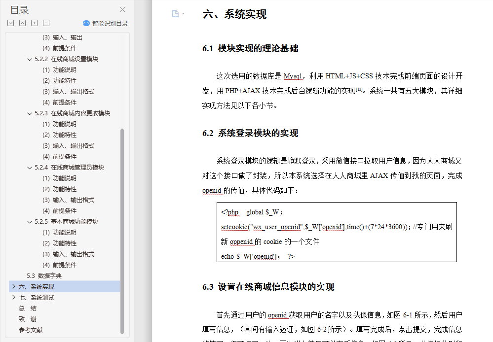 本系统主要由微信小程序客户端、服务器、数据管理端构成,服务器采用 ThinkPHP5框架技术,客户端采用微信小程序的MINA框架,数据管理端采用 CMS框架。客户端的页面实现通过网络与服务器REST API接口通信获取 MySQL数据。本人重点参与网上购物系统客户端、服务器以及数据库的设计、开发、测试工作。 在系统的设计与实现过程中,对客户端的代码进行全局的MVC模式设计控制,采用template模板增加代码的复用性,并创建客户端用户的token管理机制进行用户身份验证与权限分级。本文重点阐述在线商城客户端的商品信息展示、商品分类、购物车、下单支付,个人信息管理及数据库设计六大模块的设计和实现过程。 采用了PHP作为后台开发语言,HTML+JS+CSS作为前端开发语言,遵守微信的开发规范,完成了在线商城的基本功能,系统运行流畅,可以正常使用。