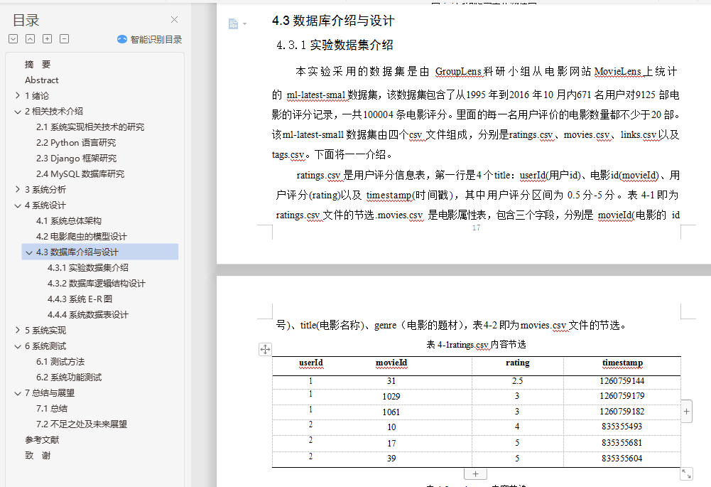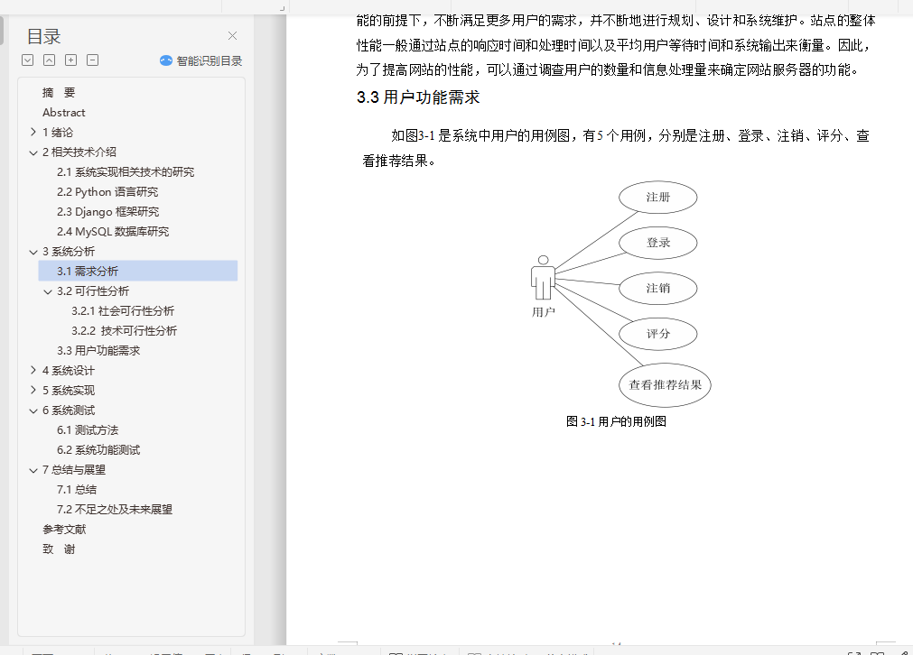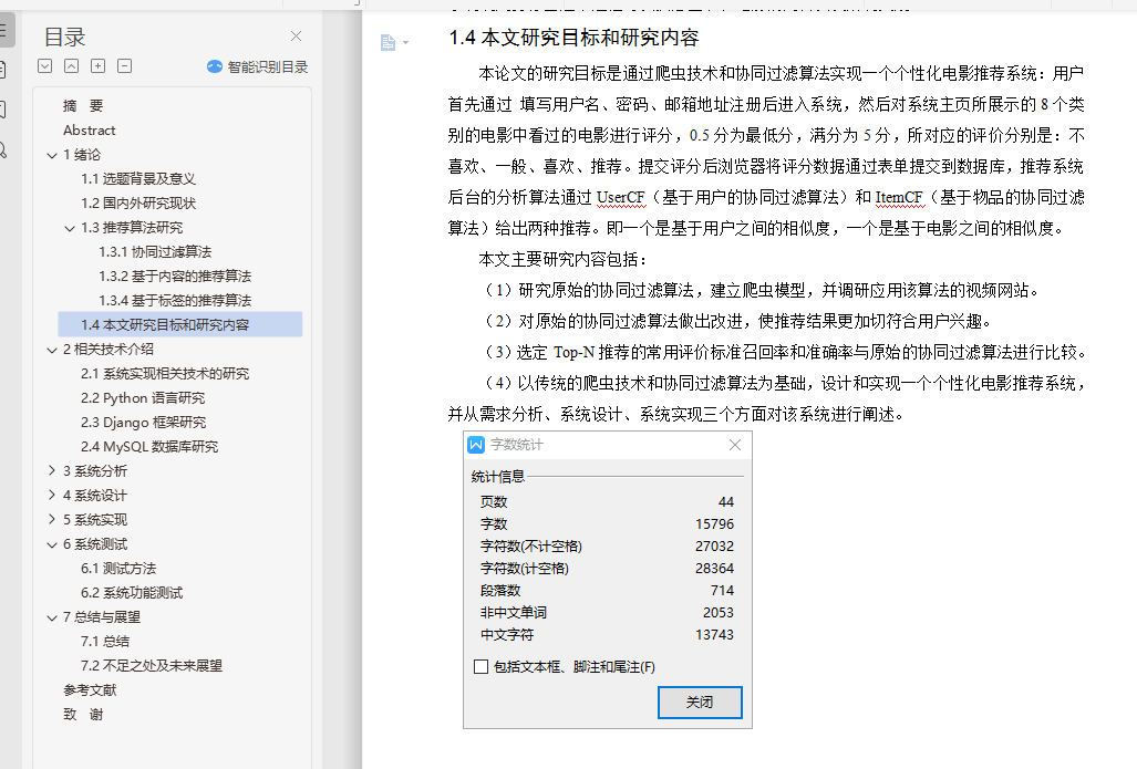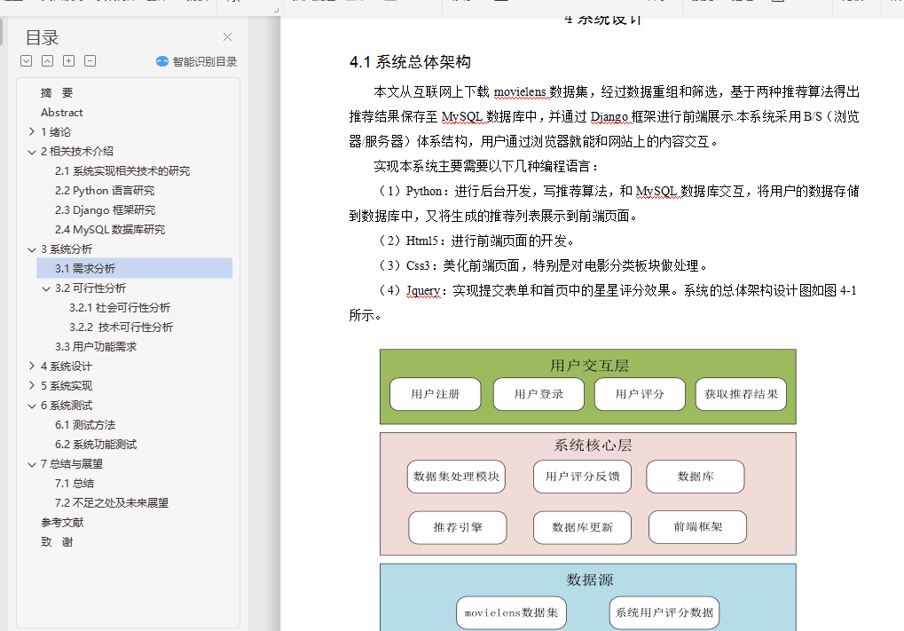 论文首先阐述推荐系统的研究现状以及意义,随后介绍了相关的推荐算法,重点介绍协同过滤算法,并对系统实现所需技术进行了研究,接着介绍了整个推荐系统的实现,最后对整个项目进行了回顾与总结。