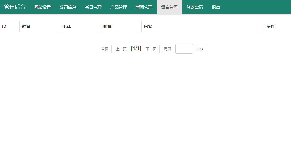 According to the needs of users,in the front page can view the enterprise profile,news information,main business,talent recruitment,contact us,message and other functions. Background only users with administrator rights can log in,responsible for publishing foreground information,managing registered user information,adding and deleting administrators,and so on.