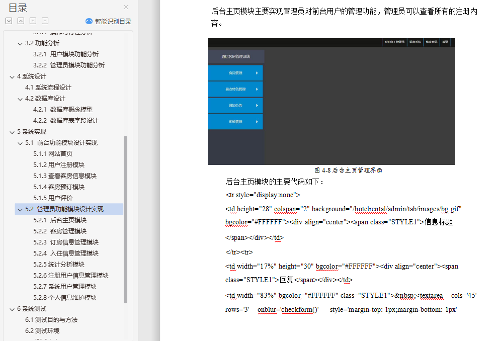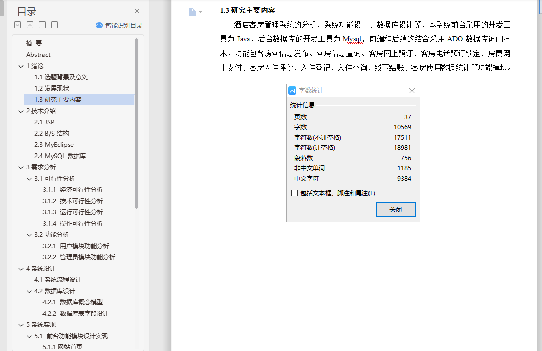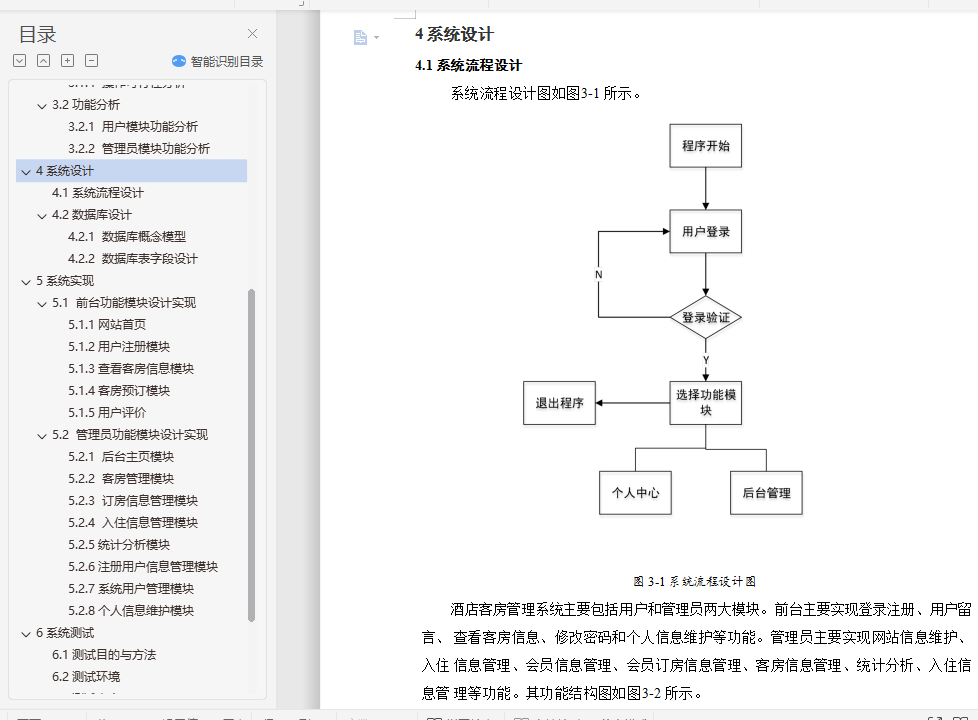 本文论述了酒店客房管理系统的详细需求分析过程。同时论述了酒店客房管理系统的详细设计过程,包括酒店管理系统的分析、系统功能设计、数据库设计等,本系统前台采用的开发工具为Java,后台数据库的开发工具为 Mysql,前端和后端的结合采用 ADO 数据库访问技术,功能包含房客信息发布、客房信息查询、客房网上预订、客房电话预订锁定、房费网上支付、客房入住评价、入住登记、入住查询、线下结账、客房使用数据统计等功能模块。