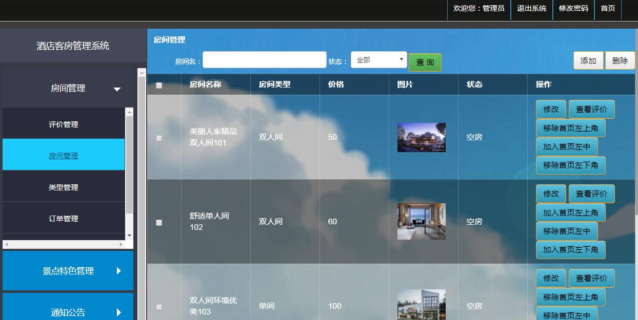 With the rapid development of hotels in China in recent years, the competition of hotel industry is increasingly fierce. In order to improve the management level and enhance the competitiveness of the hotel, the advanced hotel management information system has become an inevitable choice for hotel operators. Because of the large number of hotel service items, the contents of guest information and the amount of information, it often causes a lot of inconvenience in operation, wastes time, reduces work efficiency, and greatly affects the service quality and economic efficiency of the hotel. This system is designed for these problems, and the hotel room management system is designed and developed in accordance with the principles of scientific, standardized and systematic.