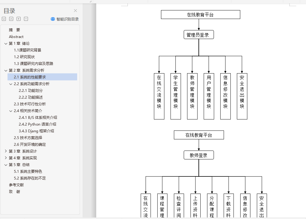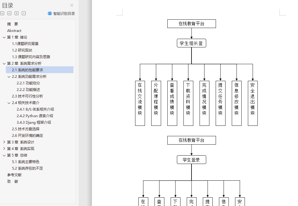 基于Django框架的在线教育平台的设计与实现采用文献法和软件开发方法以及原型法(查找并借鉴别人已经实现的Django框架系统平台。研究技术采用的后台架构模式是Django的MTV设计模式。选择的开发工具和服务器几乎都是开源免费,因此经济上是可行的。根据市场需求分析,这个项目是有市场需求的,因此很有市场前景。