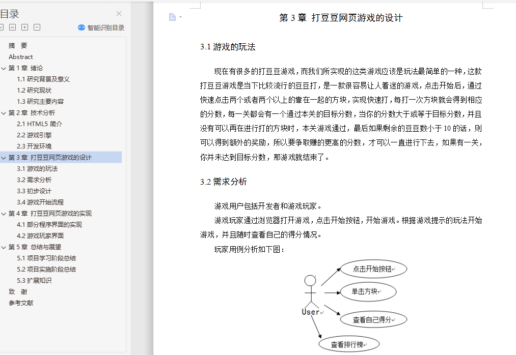 网页游戏是一个用现实包装的快感反馈引擎,它的根本目的始终是让玩家能够得到舒畅的体验为了娱乐心神,所以开发出大家喜欢的,高品质的休闲游戏会受到人们的普遍欢迎。打豆豆小游戏这款游戏主要是利用css、js、canvas等前端知识增强游戏自身的趣味性、易掌握性、可中断性、交互性,能在人们工作学习之余,享受到游戏的快乐。HTML5具有很多新的特性,最主要的还是它具有跨平台兼容性,不仅可以在电脑上运行,还可以在移动终端运行,不仅如此HTML5中的Canvas元素可以使浏览器直接创建并处理图像,减轻了开发人员的负担,而且使界面更加美观,具有很好的用户体验。减少了用户刷新页面的时间,得到了更多人的认可,因此基于HTML5所制作的游戏也就成了很多人的研究课题。本文通过介绍HTML5的一些特性,以及对游戏引擎的学习,比如cocos2d,unity3d等的认识,并通过当下比较流行的打豆豆游戏的研发过程分析来使HTML5的内容更加形象,并对HTML5的前景做了一些分析。