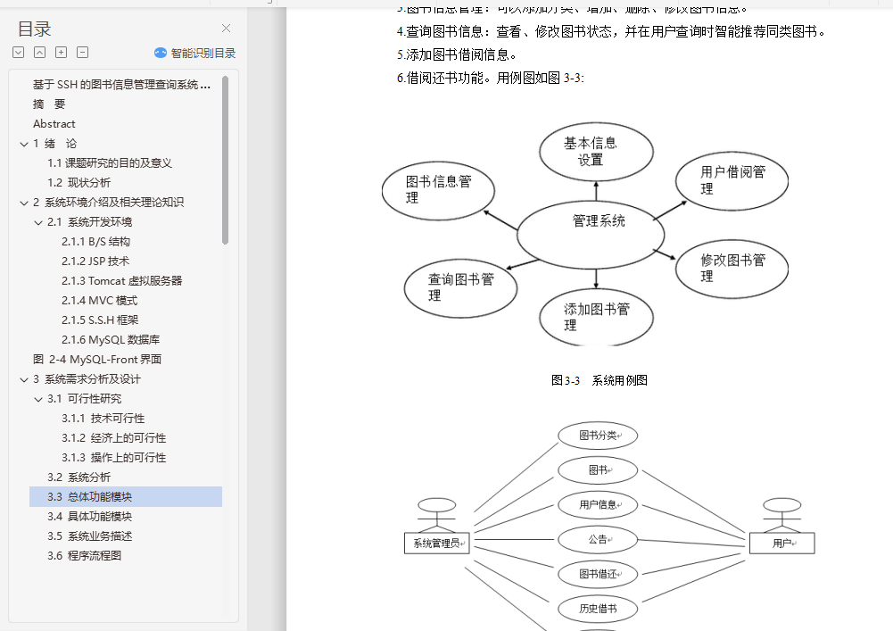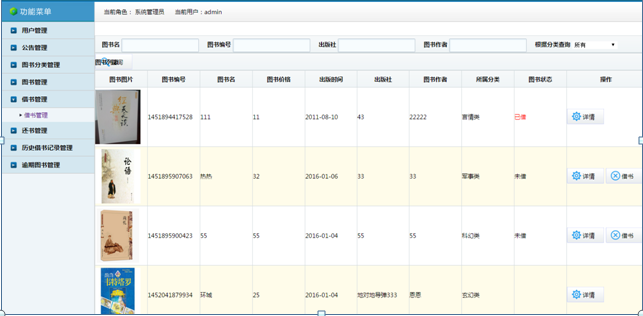 随着网络技术的发展、计算机应用水平的提高的扩大,原来系统的时效性、数据的正确性、操作的方便性上都存在不足,已影响到系统的正常使用。经过考察比较,决定利用自己的力量对智能化图书查询系统重新设计,使系统能利用软件开发技术的成果,方便图书的管理。 智能化图书查询系统是典型的信息管理系统,本文系统地介绍了智能化图书查询系统开发所需要用到的技术,和设计中遇到的问题及解决方法以及提高当前应用程序的工作性能。 利用各种面向对象的开发工具,首先在短时间内建立系统应用原型,然后对初始原型系统进行需求迭代,不断修正和改进,直到形成用完整的可行系统。 本次毕业设计利用MyEclipse开发工具和MYSQL数据库来开发这个智能化图书查询系统,使用SSH结构框架,用到了JSP、javascrip等前端技术,该系统要解决提高图书管理效率的问题以及为顾客与读者提供便利的图书检索方式,可以满足图书管理基本要求,包括添加、管理、查询、推荐等功能。该系统能根据用户的需求,快捷方便的为读者提供查询检索与借阅服务。