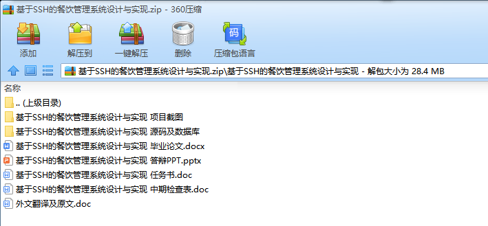 基于SSH的餐饮管理系统设计与实现毕业论文+任务书+中期表+翻译及原文+答辩PPT+源码+数据库