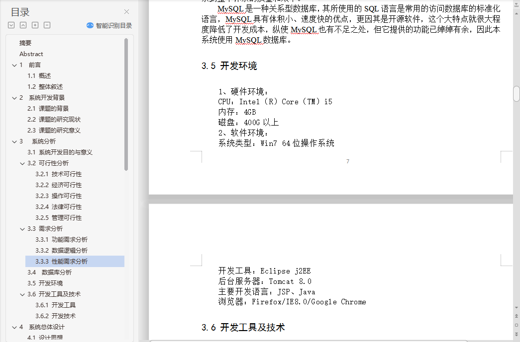 摘要在当今的社会中, 随着社会经济的快速发展以及计算机网络技术和通讯技术的快速成长,网络应用领域也一天天扩大,网络中的新鲜事物层出不穷。电子商务的发展增加了许多商业交易的平台,借助于这种互联网平台,人们进行商品宣传、业务交易等多种行为,进而使得电子商务快速发展,成为当今社会迅速成长的主流之一,电子商务在我们日常生活中扮演着越来越重要的角色。在网络如此发达的潮流中,顺应趋势,设计了基于JSP的网上购书系统这个销售平台,让用户可以更直观、便捷,足不出户即可在虚拟书店里购书。本网站页面主要用JSP实现,业务逻辑层用SSH框架(Hibernate+Struts+Spring)及Java代码实现,数据管理用MySQL数据库,开发工具使用Eclipse,服务器用Tomcat8最新版本。本系统针对管理员和普通两类用户设置了不同的功能。管理员功能包括:图书信息管理、图书类别管理、订单管理、用户信息管理;普通用户功能包括:注册信息、浏览书店信息、浏览图书信息、搜索图书、在线生成订单等功能。该系统用户界面友好,模块划分清晰,具有使用方便,安全稳定,维护简单等特点。关键词:网上购书;Java;JSP;MySQLThe Online Bookstores System Based On JSPAbstractIn today's society, the fast development of computer network technology and the communication technology, the increasing scale of the network, the new things in the network also increased a lot, in the Internet platform for publicity, trading and other acts, which makes the network more and more become the mainstream of today's social development, the site is composed of a very large network elements.Online book system This sales platform, allowing users to more intuitive and moreconvenient, do not have to go home to see a lot of books. The software system for ordinaryusers of the web page is mainly used to achieve JSP, the business logic layer with SSHframework (Hibernate+Struts+Spring) and Java code, data management with MySQL database, development tools using Eclipse, the latest version of the server with Tomcat 8.The system sets differentfunctions for administrators and ordinary users. Administrator functions include: book information management, book category management, order management, user information management; Common user functions include: regist information browsing bookstore information, browsing book information, searching book,generating orders online, etc.The system has the advantages of friendly user interface, clear module division, convenient operation, safety and stability, simple maintenance and so on.Key words:Online Bookstores;Java;JSP;MySQL目 录摘要 iAbstract ii1 前言 11.1 概述 11.2 整体叙述 12 系统开发背景 32.1 课题的背景 32.2 课题的研究现状 32.3 课题的研究意义 33 系统分析 53.1 系统开发目的与意义 53.2 可行性分析 53.2.1 技术可行性 53.2.2 经济可行性 53.2.3 操作可行性 63.2.4 法律可行性 63.2.5 管理可行性 63.3 需求分析 63.3.1 功能需求分析 63.3.2 数据逻辑分析 63.3.3 性能需求分析 73.4 数据库分析 73.5 开发环境 73.6 开发工具及技术 83.6.1 开发工具 83.6.2 开发技术 84 系统总体设计 104.1 设计思想 104.2 功能模块设计 104.3 界面设计 124.4 系统用户用例图 134.4.1 普通用户用例图 134.4.2 管理员用例图 134.5 数据库的设计 144.5.1 数据库概念结构设计 144.5.2 数据库逻辑结构设计 165 系统详细设计与实现 205.1 管理员登录页面 205.2 管理员模块 215.2.1 图书类目管理 215.2.2 图书信息管理 235.2.3 用户信息管理 275.2.4 订单信息管理 285.2.5 退出系统 285.3 普通用户模块 285.3.1 系统主页面实现 285.3.2 图书查询 295.3.3 用户登录注册 305.3.4 图书分类查询 305.3.5 在线下单 315.3.6 管理订单功能 326 系统测试 336.1 系统测试目的与意义 336.2 测试过程 336.2.1 网站首页用户登录测试 336.2.2 管理员删除图书信息测试 346.2.3 生成订单测试 346.2.4 其他错误测试 357 系统的运行和维护 36结论 37参考文献 38致谢 39