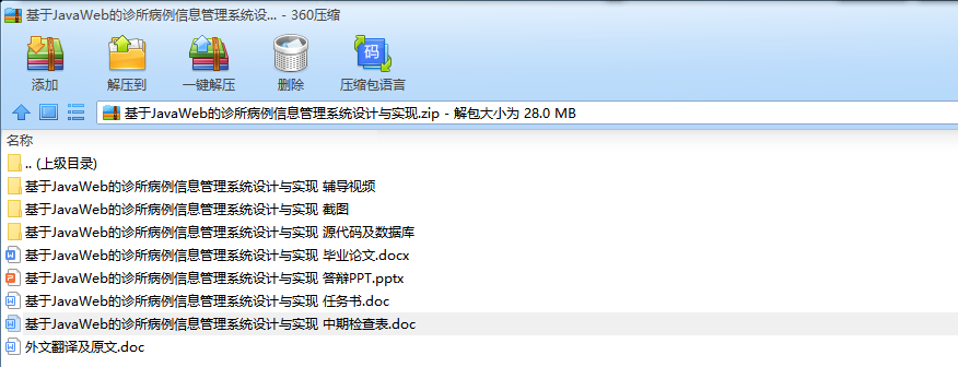 基于JavaWeb的诊所病例信息管理系统设计与实现毕业论文+任务书+中期表+翻译及原文+答辩PPT+源码+数据库+辅导视频