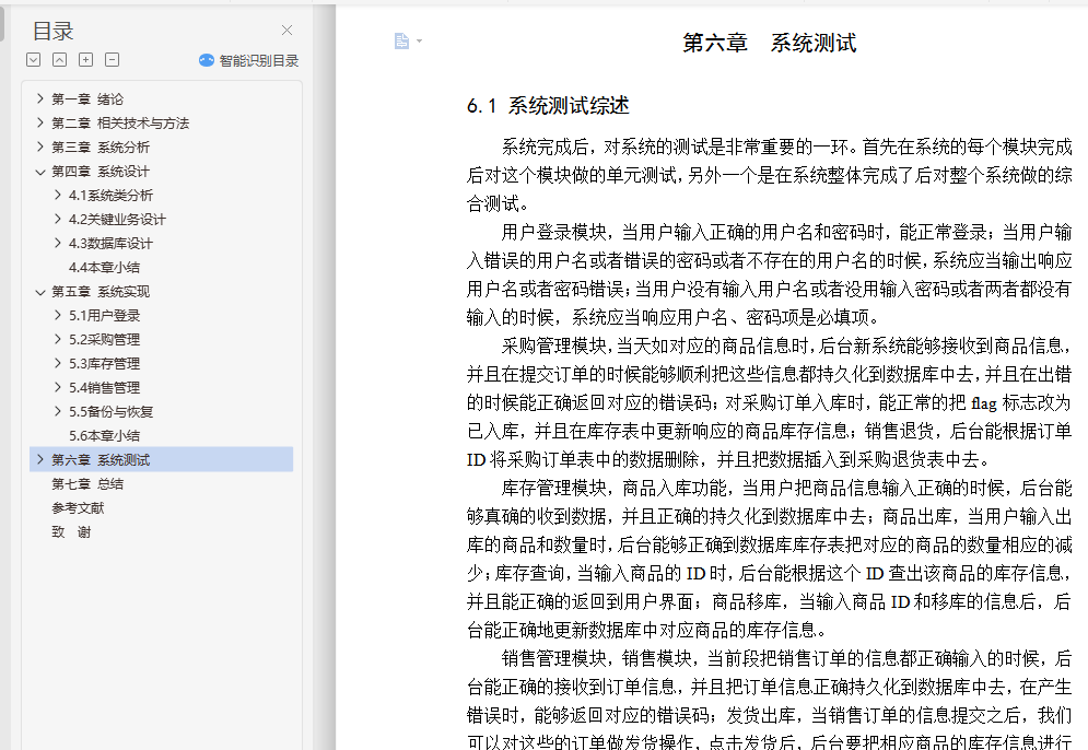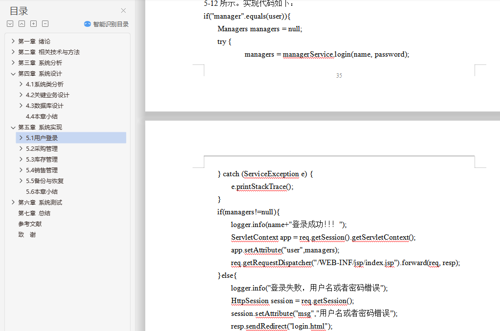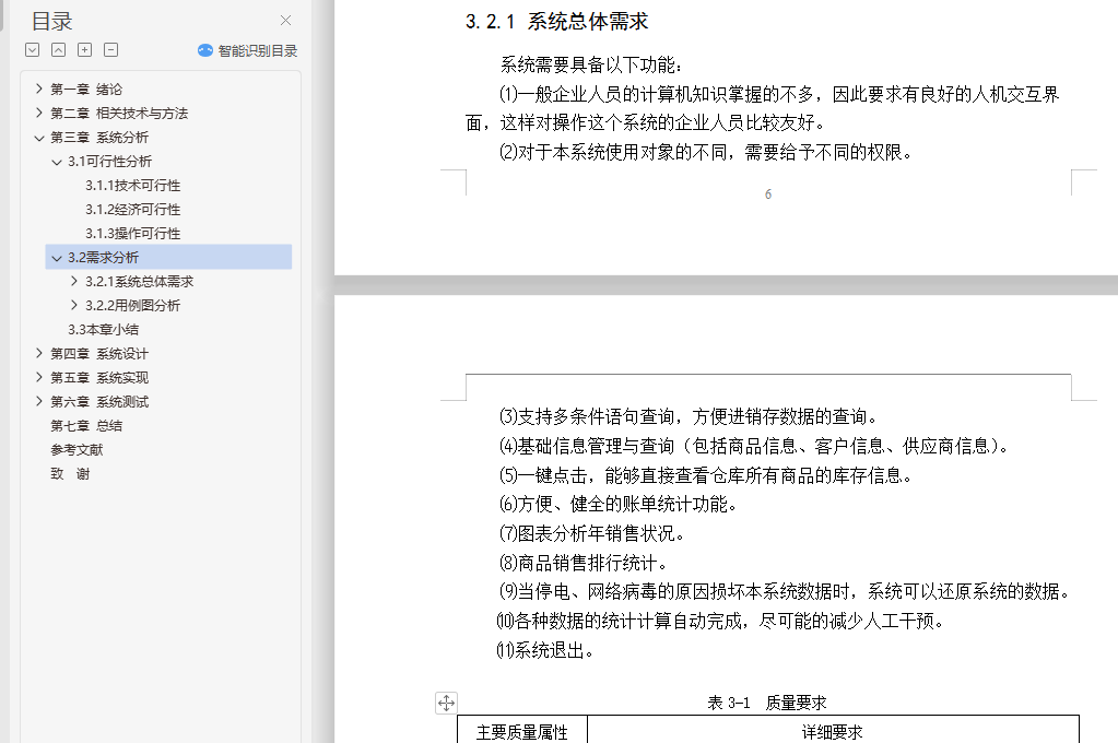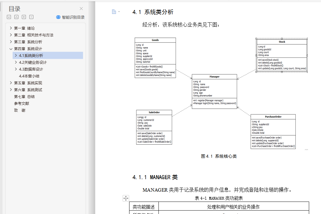 摘 要进入21世纪以来,商业管理中需要处理的数据和信息越来越多。大量的数据和繁杂的数据使得古老的手工处理数据的方式渐渐显得力不从心。甚至有些信息处理的方式在手工处理的模式下是根本无法是实现的,只能利用计算机的高运行频率来进行迭代计算。而且最近国家正在提倡大众创业,中小型企业很多。中小企业在我国经济发展中具有重要地位,目前我国的中小企业数量多,地区分布广泛,行业分布跨度大。随着全球经济一体化的发展和电子商务的兴起,中小企业之间的竞争将越来越激烈。网络及电子商务的迅猛发展突破了时间、空间的局限性,给中小企业带来了更多的发展机会,同时也增大了企业之间的竞争强度。这就要求中小企业必须改变企业的经营管理模式,提高企业的运营效率。随着技术发展,电脑操作及管理日趋简化,电脑知识日趋普及,同时市场经济快速多变,竞争激烈,企业采用电脑管理进货、库存、销售等诸多环节也已成为必然趋势。关键词:进销存管理系统;B/S结构;mysql数据库;JSP;spring;springMVC;spring boot;JPAABSTRACTSince twenty-first Century, more and more data and information are needed in business management. A large number of data and complex data makes the ancient way of manual processing of data gradually appear inadequate. Even some of the information processing in the manual processing mode can not be achieved at all, only the use of the computer's high operating frequency for iterative calculation. And recently, the country is promoting public entrepreneurship, many small and medium enterprises. Small and medium-sized enterprises play an important role in China's economic development. At present, there are a large number of small and medium-sized enterprises in china. With the development of global economic integration and the rise of e-commerce, the competition between small and medium enterprises will become more and more fierce. The rapid development of network and electronic commerce has broken through the limitation of time and space, and has brought more opportunities for the development of small and medium-sized enterprises. This requires the small and medium-sized enterprises must change the mode of operation and management of enterprises, improve the operational efficiency of enterprises. With the development of computer technology, operation and management is simplified, the growing popularity of computer knowledge, and fast changing market economy, intense competition, enterprise computer management purch asing inventory sales and many other sectors and has become an inevitable trend.Keywords: Purchase, sales and inventory management system; B / S structure; Mysql Database; JSP; Spring;SpringMVC;spring boot;JPA目 录第一章 绪论 11.1 研究背景和意义 11.2 研究目标 11.3 论文结构 11.4 本章小结 2第二章 相关技术与方法 32.1 架构概述 32.2 关键技术简介 32.3 开发工具 42.4 本章小结 5第三章 系统分析 63.1 可行性分析 63.2 需求分析 63.3 本章小结 15第四章 系统设计 164.1 系统类分析 164.2 关键业务设计 214.3 数据库设计 234.4 本章小结 33第五章 系统实现 355.1 用户登录 355.2 采购管理 375.3 库存管理 395.4 销售管理 425.5 备份与恢复 435.6 本章小结 46第六章 系统测试 476.1 系统测试综述 476.2 测试用例 486.3 测试分析 516.4 本章小结 52第七章 总结 53参考文献 54致 谢 55