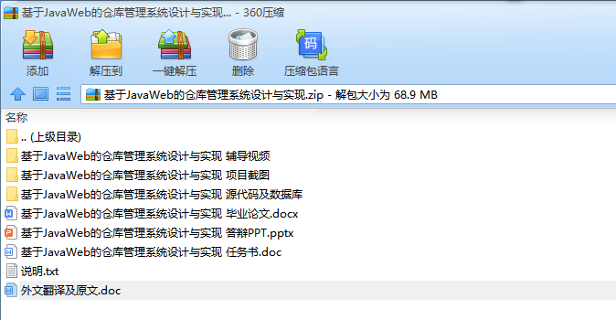 基于JavaWeb的仓库管理系统设计与实现毕业论文+任务书+翻译及原文+答辩PPT+源码+数据库+辅导视频