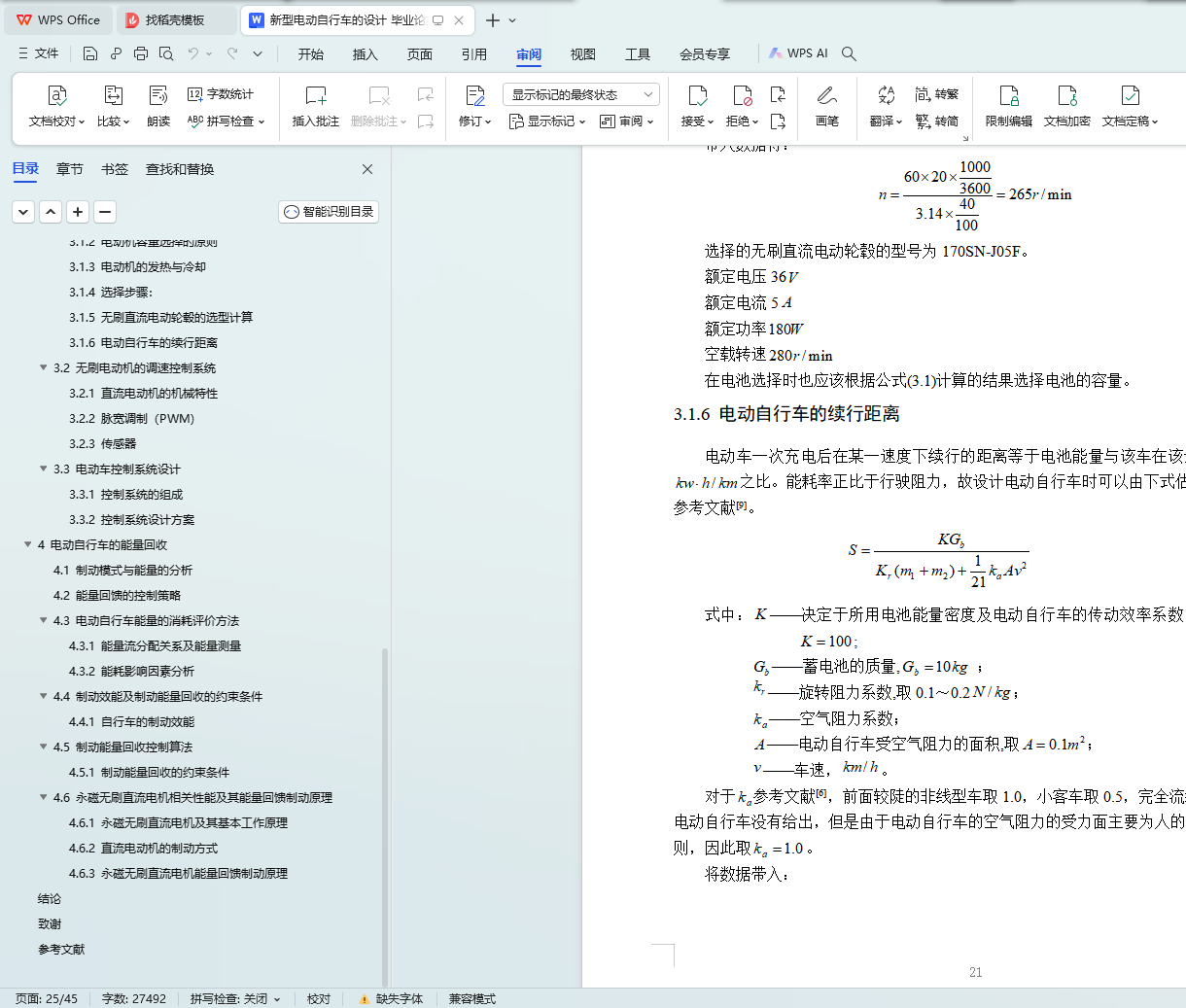 3.1.6 电动自行车的续行距离