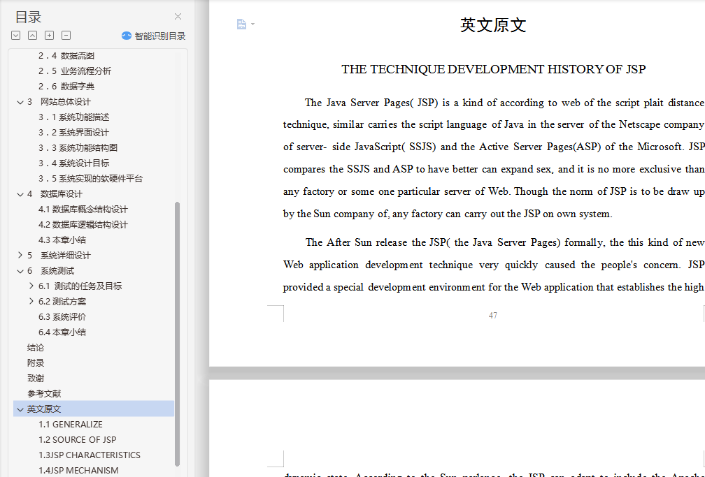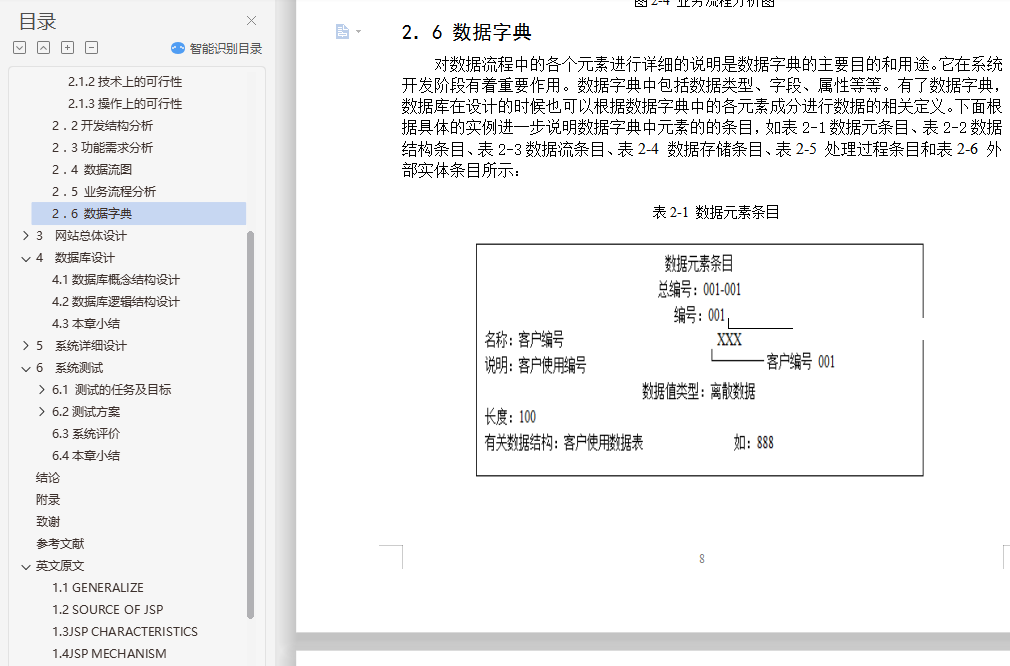 基于JSP的旅游景点网站设计与实现摘要城市旅游产业的日新月异影响着村镇旅游产业的发展变化。网络、电子科技的迅猛前进同样牵动着旅游产业的快速成长。随着人们消费理念的不断发展变化,越来越多的人开始注意精神文明的追求,而不仅仅只是在意物质消费的提高。旅游景点网站的设计就是帮助村镇发展旅游产业,达到宣传效果,带动一方经济发展。而在线消费与查询正在以高效,方便,时尚等的特点成为广大互联网用户的首选。基于JSP的旅游景点网站设计与实现与开发以方便、快捷、费用低的优点正慢慢地进入人们的生活。人们从传统的旅游方式转变为在线预览,减轻了劳动者的工作量。使得旅游从业人员有更多时间来获取、了解、掌握信息。旅游景点网站根据当地旅游风景和特色的实际情况,设计出一套适合当地旅游信息网站,通过网络,实现该网站的推广从而达到宣传的效果。本系统在设计方面采用JSP和Java语言以及html脚本语言,同时采用B/S模式,进行各个界面和每个功能的设计与实现,后台管理与设计选用了SQL Server 2005数据库,前台设计与后台管理相结合,共同完成各功能模块的功能。关键词:SQL2005 ;旅游;JSP ;B/SThe design and implementation of the tourism website in the town of saibeiAbstractThe rapid development of the urban tourism industry has led to the rapid development of the tourism industry in the village. The rapid advance of the Internet and electronic technology has also led to the rapid development of the tourism industry. With the improvement of people's living standards, more and more people are paying attention to the pursuit of spiritual civilization, and the consumption idea is constantly changing. The design of the tourism site in the town of saibei is to help the village development tourism industry, to achieve the publicity effect, to drive one side economic development. And the online consumption and the query is in the high efficiency, convenience, fashion and so on the characteristic become the first choice of the Internet user. The design and development of the tourism website in the town of saibei are slowly entering people's lives with the advantages of convenience, speed and cost. People have switched from traditional travel to online previews, reducing the workload of workers. The travel industry has more time for information, information and information.Camels rural tourism website according to the actual situation of local tourism landscape and characteristic, design a set of suitable for the local tourist information web site, through the network, realize the website promotion so as to achieve the effect of propaganda.This system using JSP and Java language in terms of design and HTML scripting language, using B/S mode at the same time, for each interface and the design and implementation of each function, background management and design chose the SQL Server 2005 database, the front desk design combined with background management, complete the function of each function module.Keywords: SQL2005; JSP; B/S in villages and towns;目录基于JSP的旅游景点网站设计与实现与实现 I摘要 IAbstract II1 概述 11.1 项目研究背景 11.2 研究目的及意义 11.3 开发软件介绍 11.3.1技术介绍 11.3.2 SQL2005数据库 32 系统分析 42.1可行性研究 42.1.1经济上的可行性 42.1.2技术上的可行性 42.1.3操作上的可行性 42.2开发结构分析 42.3功能需求分析 52.4 数据流图 62.5 业务流程分析 72.6 数据字典 83 网站总体设计 113.1系统功能描述 113.2系统界面设计 113.3系统功能结构图 113.4系统设计目标 123.5系统实现的软硬件平台 134 数据库设计 144.1数据库概念结构设计 144.2数据库逻辑结构设计 174.3本章小结 195 系统详细设计 205.1主界面模块设计 205.2用户注册模块设计 245.3旅游景点模块设计 265.4酒店预定模块设计 285.5 后台管理设计 305.5.1后台登录模块设计 335.5.2旅游景点模块设计 355.5.3线路管理模块设计 386 系统测试 406.1 测试的任务及目标 406.1.1测试的任务 406.1.2测试的重要性及目标 406.2测试方案 416.2.1模块测试 416.2.2集成测试 416.2.3验收测试 426.2.4平行运行 426.3系统评价 426.4本章小结 42结论 43附录 44致谢 49参考文献 50英文原文 521.1 GENERALIZE 521.2 SOURCE OF JSP 531.3JSP CHARACTERISTICS 551.4JSP MECHANISM 56中文翻译 591.1 概述 591.2 JSP的由来 601.3 JSP的特点 601.4 JSP的机制 61