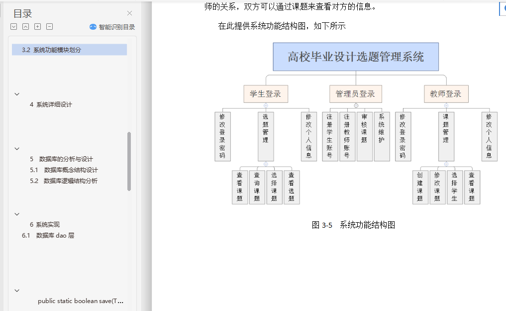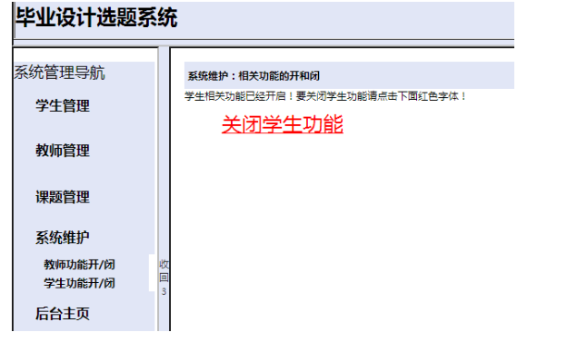 本次项目为基于Java的高校毕业设计选题管理系统,可以让学生在此系统中直接选报自己想要的题目,老师也可以通过此系统来发布题目。学生可以操作的功能包括:选择课题、修改选择的课题、退选课题,修改个人信息及其密码;教师可以操作的功能包括:添加课题、修改已有课题、删除课题、修改个人信息及其密码;管理员可以操作的功能包括:添加教师、批量添加教师、添加学生、批量添加学生、管理课题、维护系统。