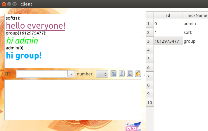 本系统实现了聊天室的基本功能。该程序是在Ubuntu环境下编写和调试客户端与服务器端程序,实现了客户端和服务端连接并通信并实现了群聊、私聊和字体样式设置的功能。服务器端程序是通过vi编辑器,使用C、C++编写并利用了MySql数据库的相关知识。客户端程序是用Qt实现图形化界面和与服务器的通信。