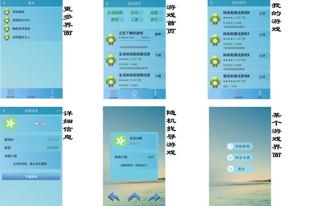 本设计完成的应用为一款移动游戏社交应用,本设计根据软件设计的标准流程,从软件的需求分析、可行性分析着手,然后进行软件的总体设计和详细设计与实现,最后进行软件测试确保软件的功能能达到预期标准.本设计将软件开发划分为三大基本模块:服务器端,数据库端以及客户端.整个应用基于Java编程语言编写,其中服务器端再次细分为Java Web服务器和TCP Socket服务器,数据库端分为MYSQL数据库和SQLITE数据库,客户端基于Android平台开发,本应用的核心目标为:游戏与社交,实现的核心功能为:即时通信,游戏,社交.以实现核心功能为目的,再次将Android客户端分为两大部分:核心功能部分与附加功能部分,核心功能部分细分为四个模块:登录注册,消息中心,游戏中心,状态圈;附加功能部分也细分为四个模块:上传下载中心,用户中心,工具中心,设置中心.