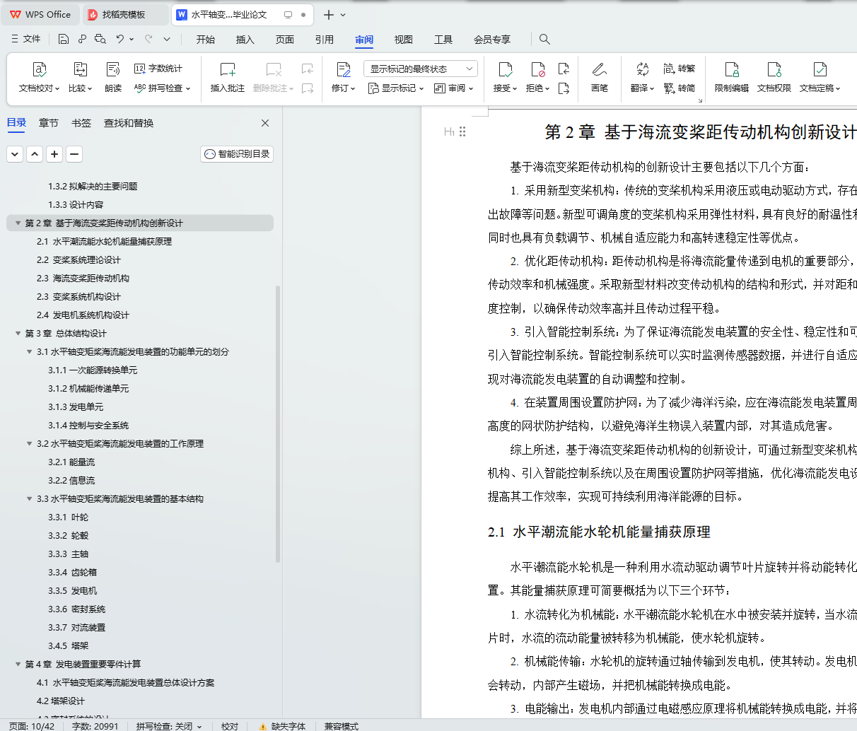 水平轴变矩桨海流能发电装置系统旨在利用海流能够生成的机械能来产生电能。该系统主要由桨叶、转轴、变矩器、发电机和传动系统等组成。其中,桨叶采用三片可调的螺旋桨,能够适应不同海流条件,提高转化效率;转轴上装有可控的变矩器,能够调节转矩来适应不同的海流动态;发电机则将机械能转化为电能;传动系统采用齿轮传动,具有高效、可靠、稳定等特点。此外,为了提高系统的安全性和耐久性,还采用了专用材料和防腐蚀措施。该装置系统能够在不同海流条件下实现高效的能量转换,为开发海洋能源提供了可行性的方案。