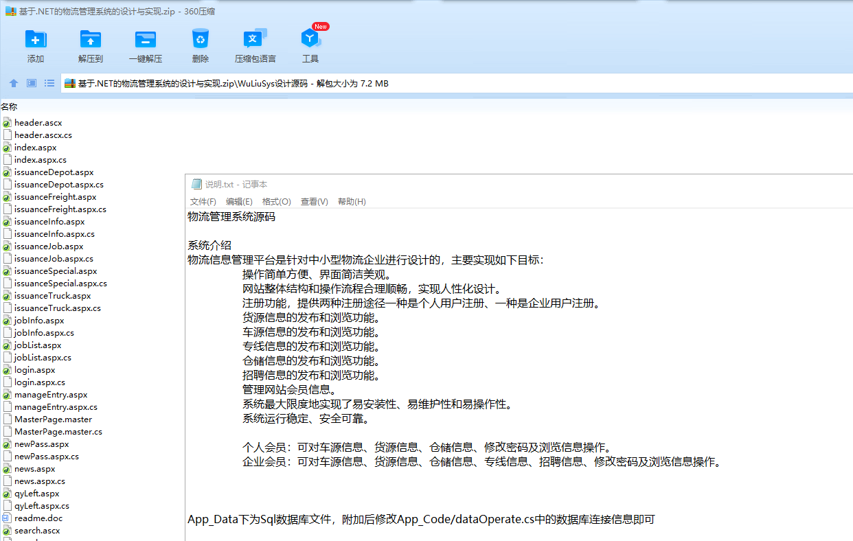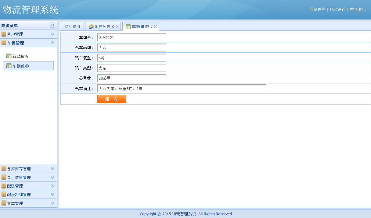 This system is based on. Net logistics management system. This system uses three layers structure to design the choice of Web service technology platform, the progress of using technology, the future, scalability, guarantee the system has good stability and scalability. Hierarchical design, component implementation of system design. Using component-based software development method, the structure level, business systems, achieve separation, separation of logic and data, a unified service interface specification as the core, Using open standards. Functions, relatively complete systems, system network interfaces and user interactions with users, enterprises can provide information and information through database management systems The system implements browsing, querying, editing and managing basic database operations, such as using modular design methods, easy to use and maintain applications according to users' needs. In another part of the module, promote the expansion of application and maintenance, establish the basis of program function reuse. Logistics information management platform, logistics industry foundation, actual investigation, actual design. Belong to the B / S mode, The system can access the back-end database to update the data through the front interface and modify the database. The logistics information management platform is divided into two parts, including the foreground and the future. Background two modules: user registration, login, logistics query, company information view, background modules: user management, vehicle management, warehouse inventory management, employee information management, distribution management, delivery route management, Article management.