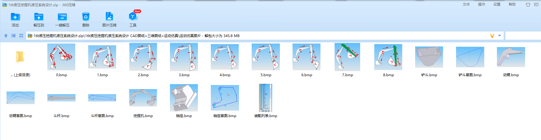 关键词:液压挖掘机;工作装置;液压系统;运动仿真;CAD