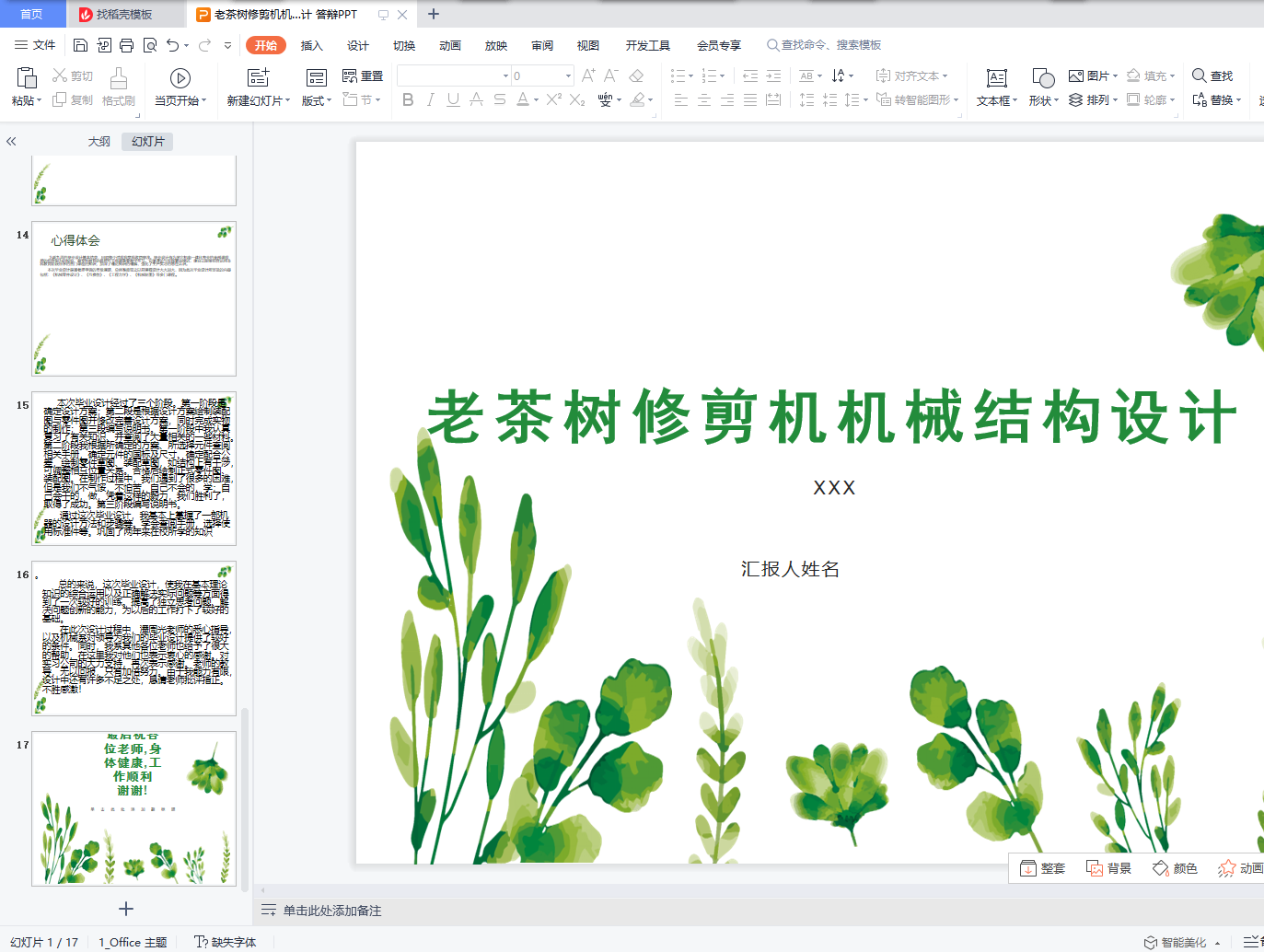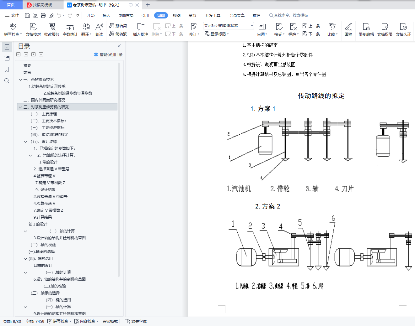 由于我国种茶历史悠久,种植地域广泛,迫切需要机械修剪器具来代替手工修剪本课题即针对成龄茶树的深修剪、衰老茶树的重修剪或台刈面临的问题及现有修剪设备的不足,研究出一种全新的茶树重修剪机械设备,并对整机各结构部件进行协调,对修剪机所用刀片的材料、结构进行分析,研制配套的传动系统,相应的带轮,轴,机架,并进行计算和装配图的绘制。