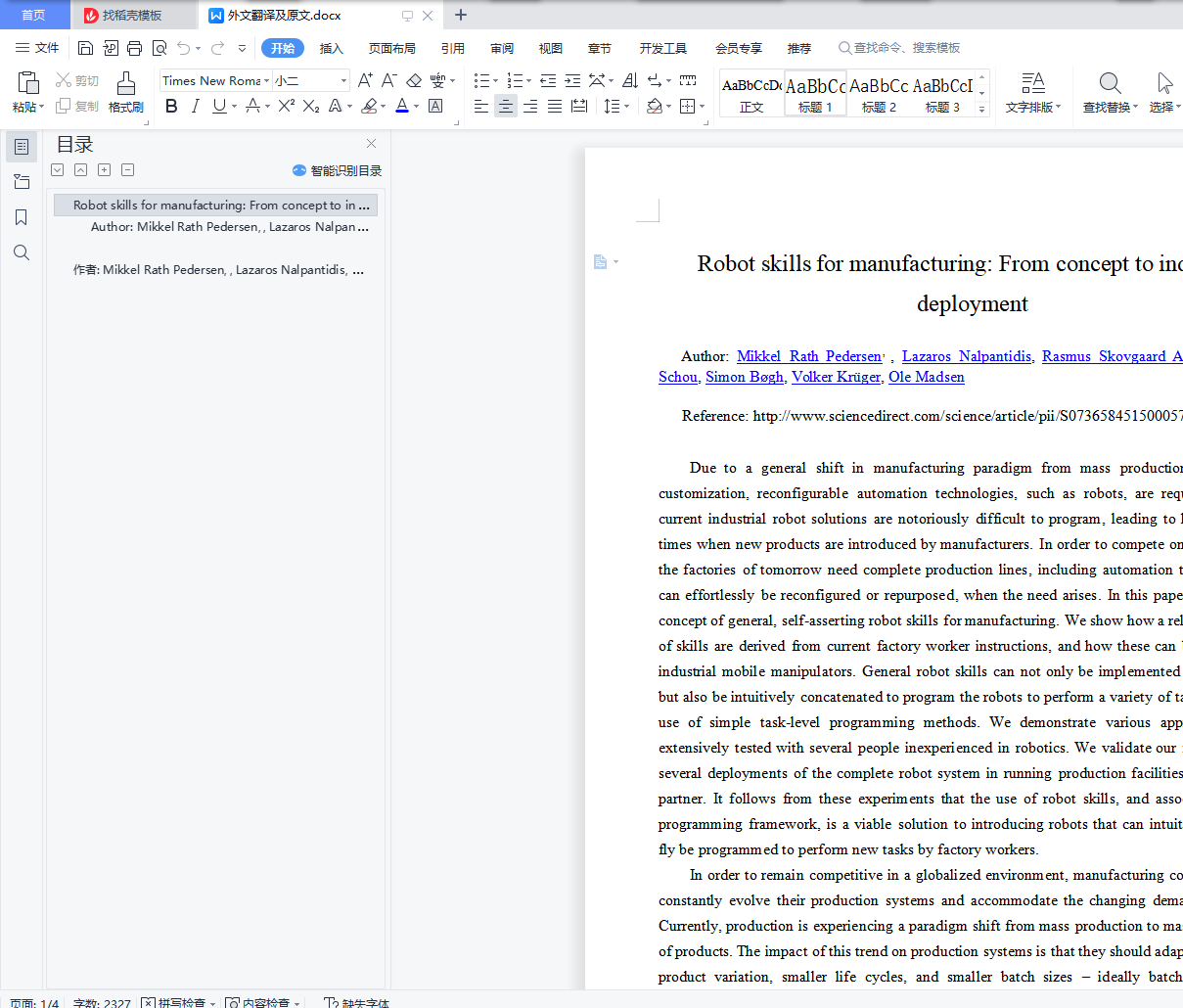 1.3 工业机械手在生产中的应用……………………………………………………3