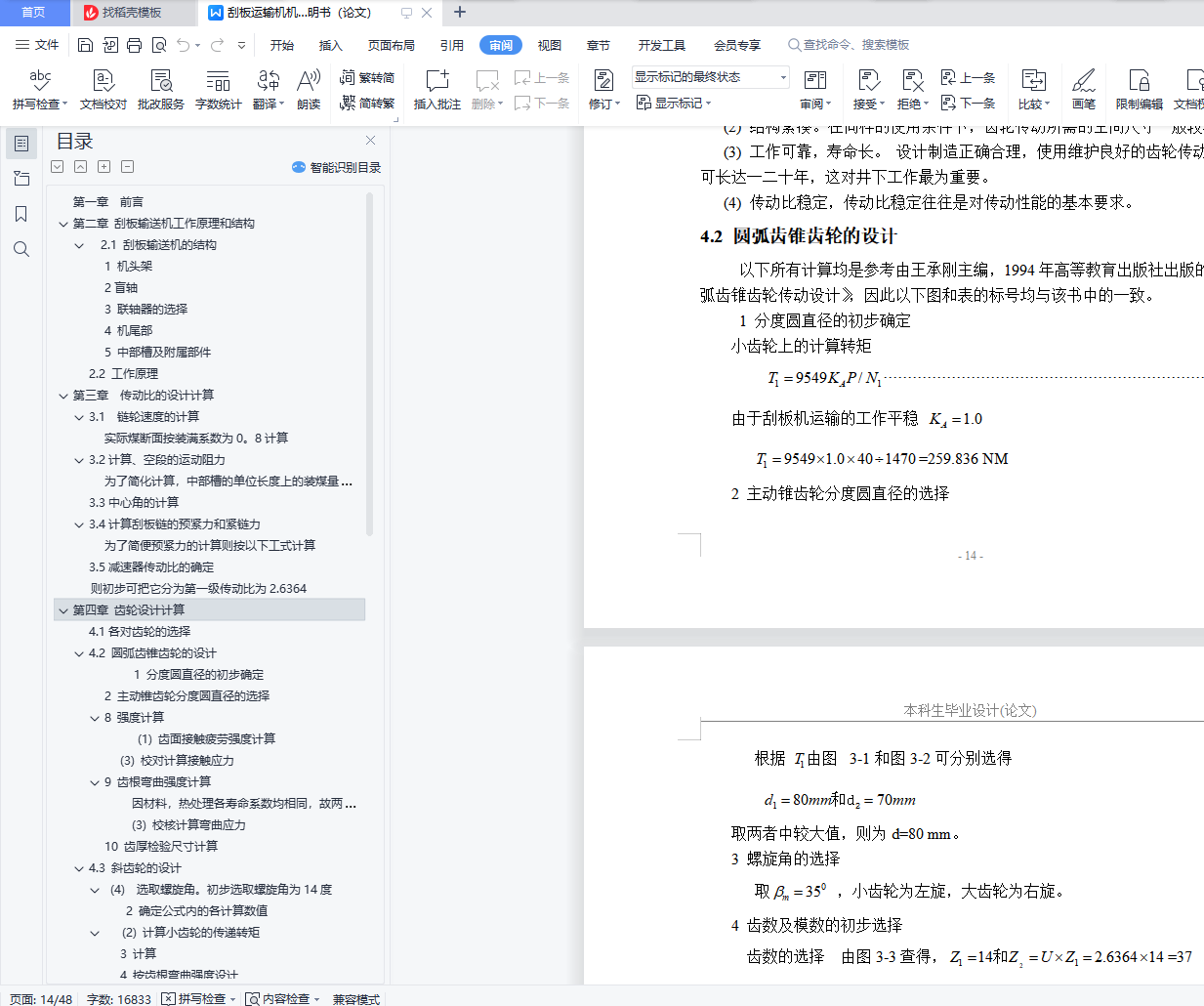 刮板输送机是煤矿井下工作面生产的重要运输工具,因此在弄懂它的原理和结构之后。根据毕业设计的需要,我设计的是边双链大中型刮板运输机。而我又把设计部分的重点放在减速器设计之上,因为它是转递功率和转速的中间纽带,好的减速器能有效地降低功率的损失,提高工作效率。从圆弧齿锥齿轮等齿轮的设计和较核到每一根轴的设计和较核都是精心设计打造而成的。当然,其他的结构也是机器工作时所必需的,因此,通过去图书馆和网上查资料选择最合适本机器的结构。以保证机器的良好运转。希望本刮板输送机能为公司带来好的效益。