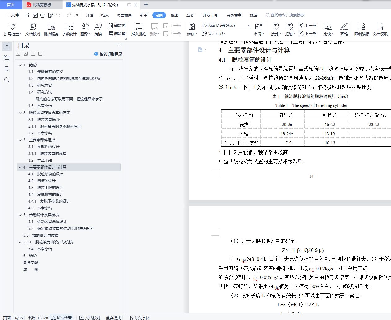 关键词:水稻 ; 纵置式轴流脱粒; 复脱; 理论依据