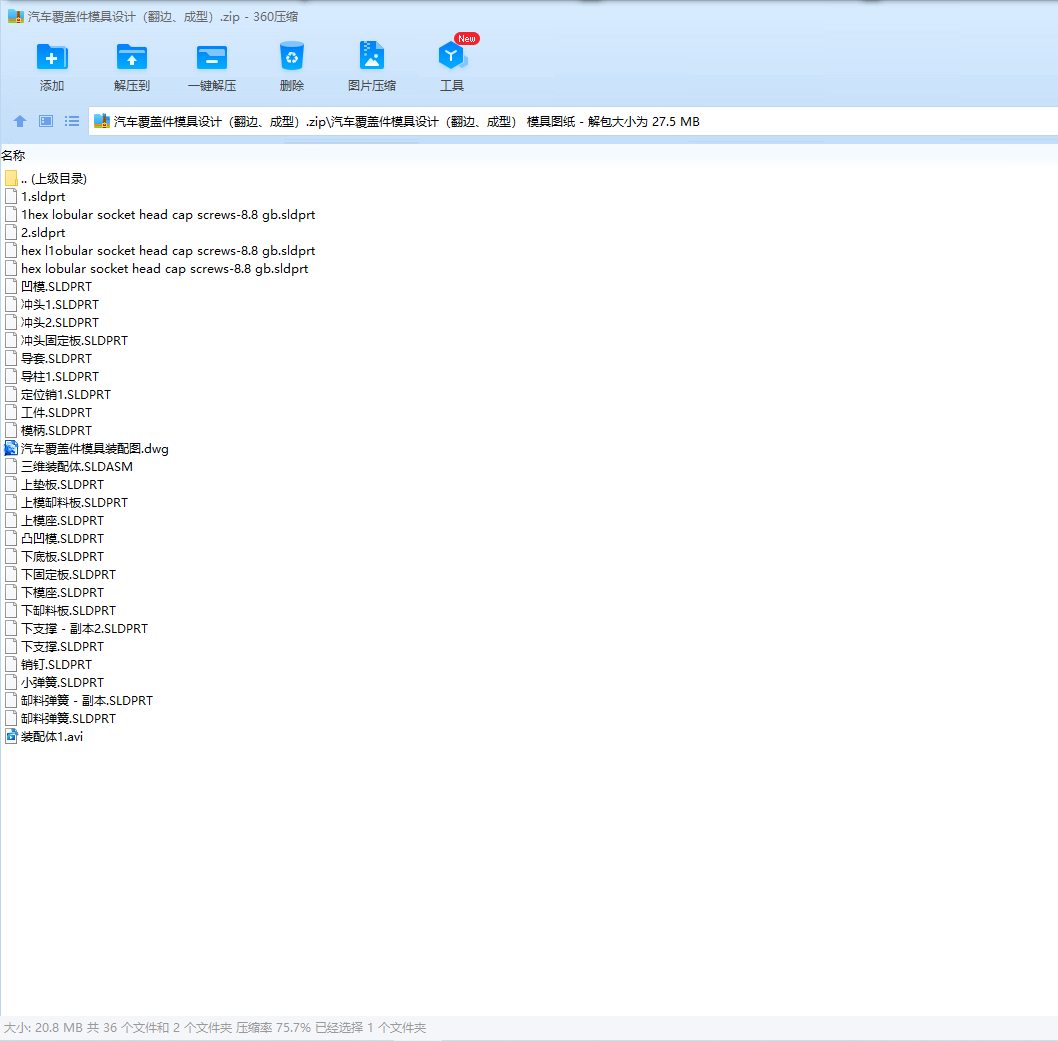 本设计是汽车覆盖件的翻边及成型模具的设计,冲压件产品需要冲孔、滚边、下料。成型特性、成型工艺。复合模具以其生产效率高、批量生产成本低、操作安全方便、产品质量稳定性高等优点而得到广泛应用。