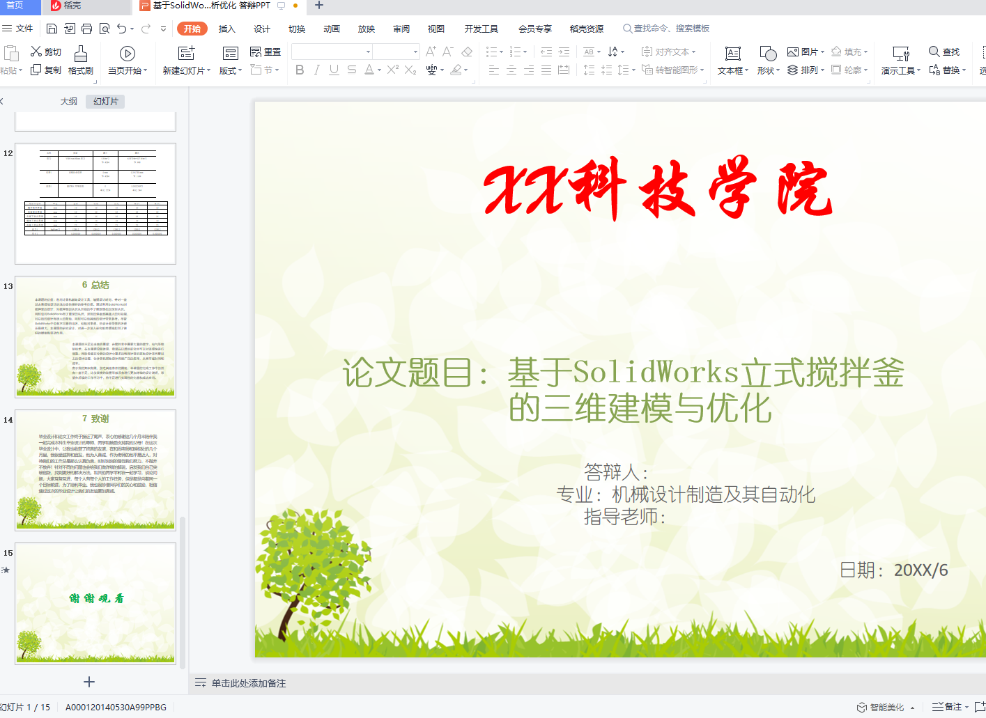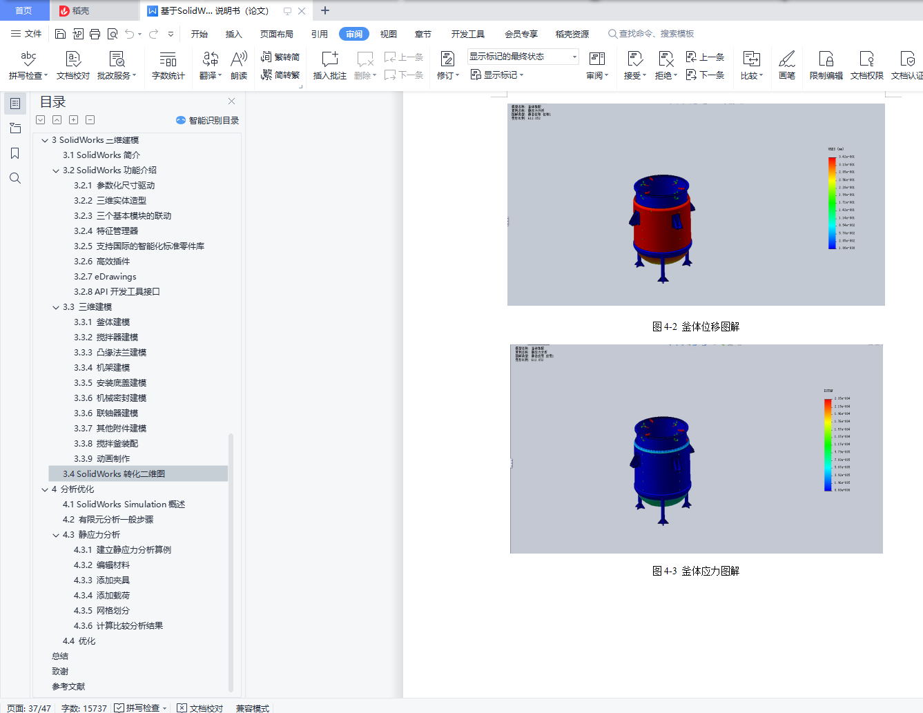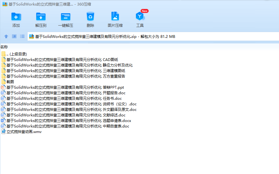 基于SolidWorks的立式搅拌釜三维建模及有限元分析优化 说明书(论文)+任务书+选题表+开题+文综+中期表+翻译及原文+PPT+CAD图纸+三维图+静应力分析及优化+查重+立式搅拌釜动画