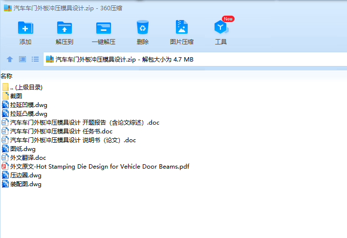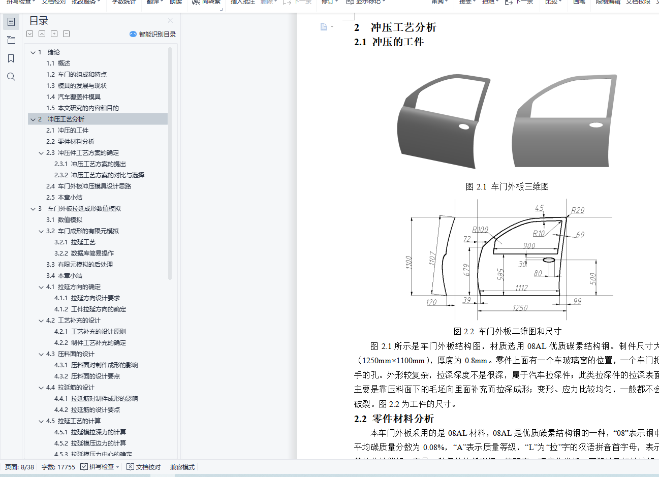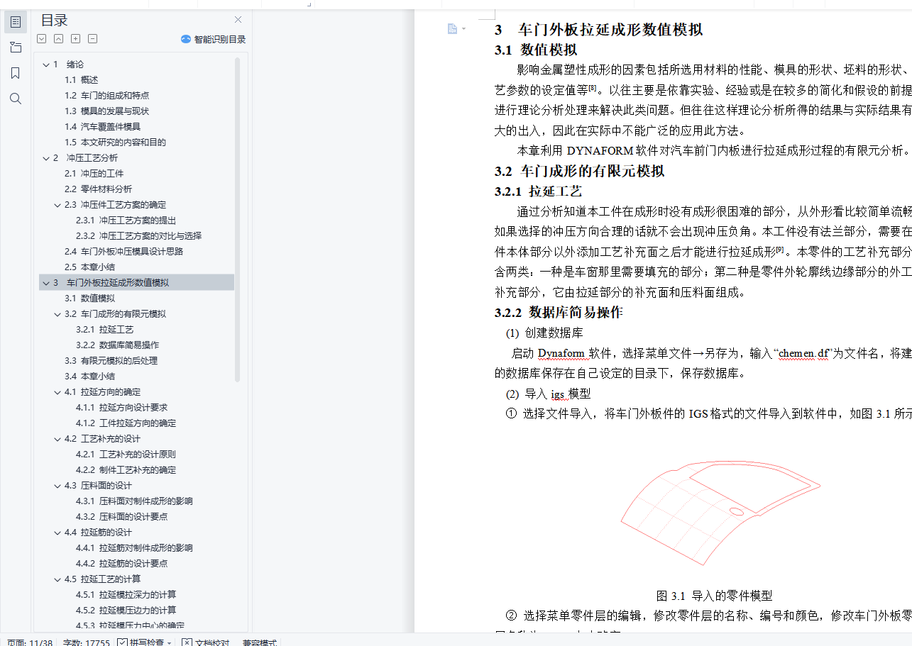 关键词:车门外板;覆盖件;工艺分析;模具设计;UGThe design of car door panels stamping die