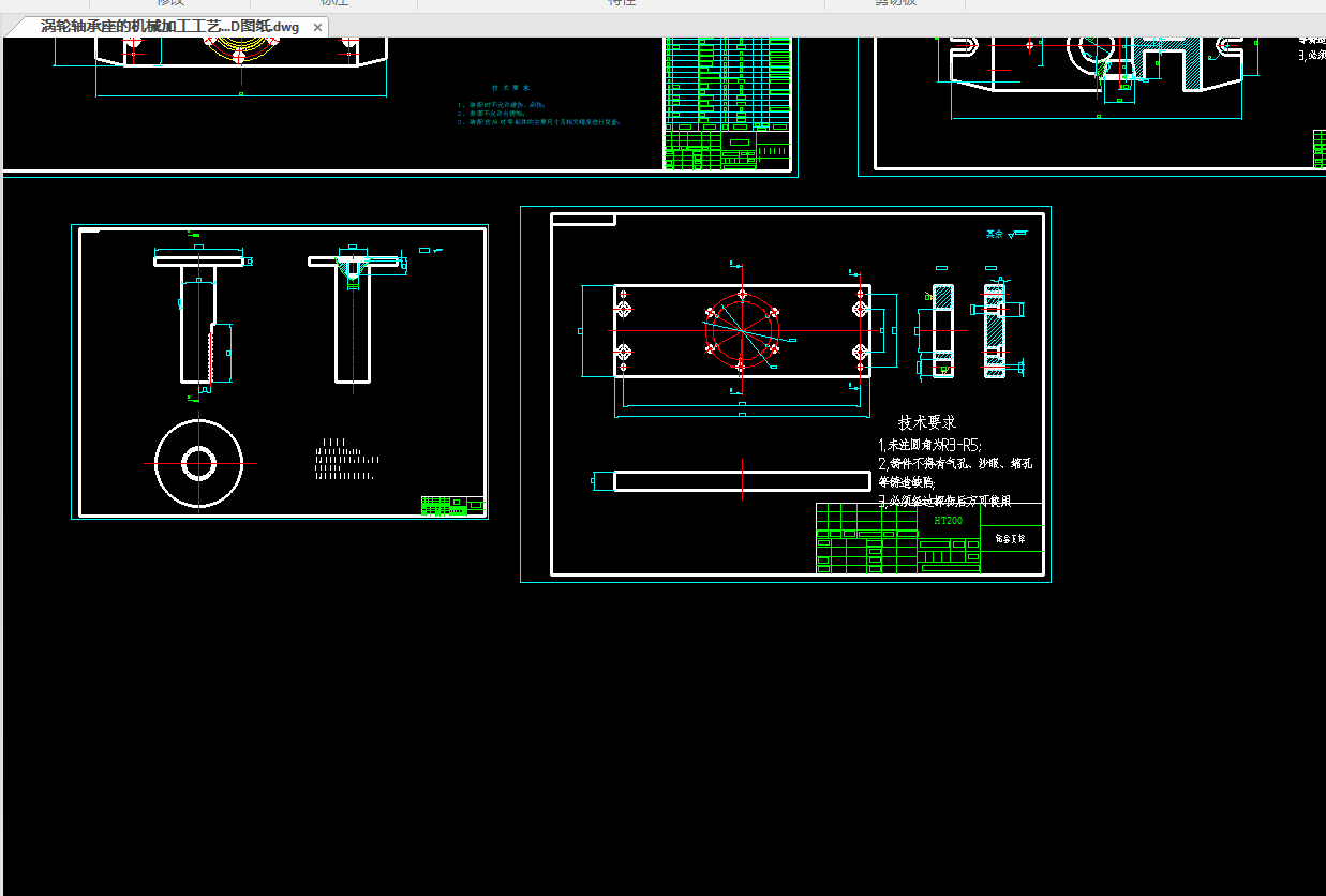 涡轮轴承座的机械加工工艺规程及专用夹具的设计 说明书(论文)+任务书+工序卡+过程卡+cad图纸+ug三维图