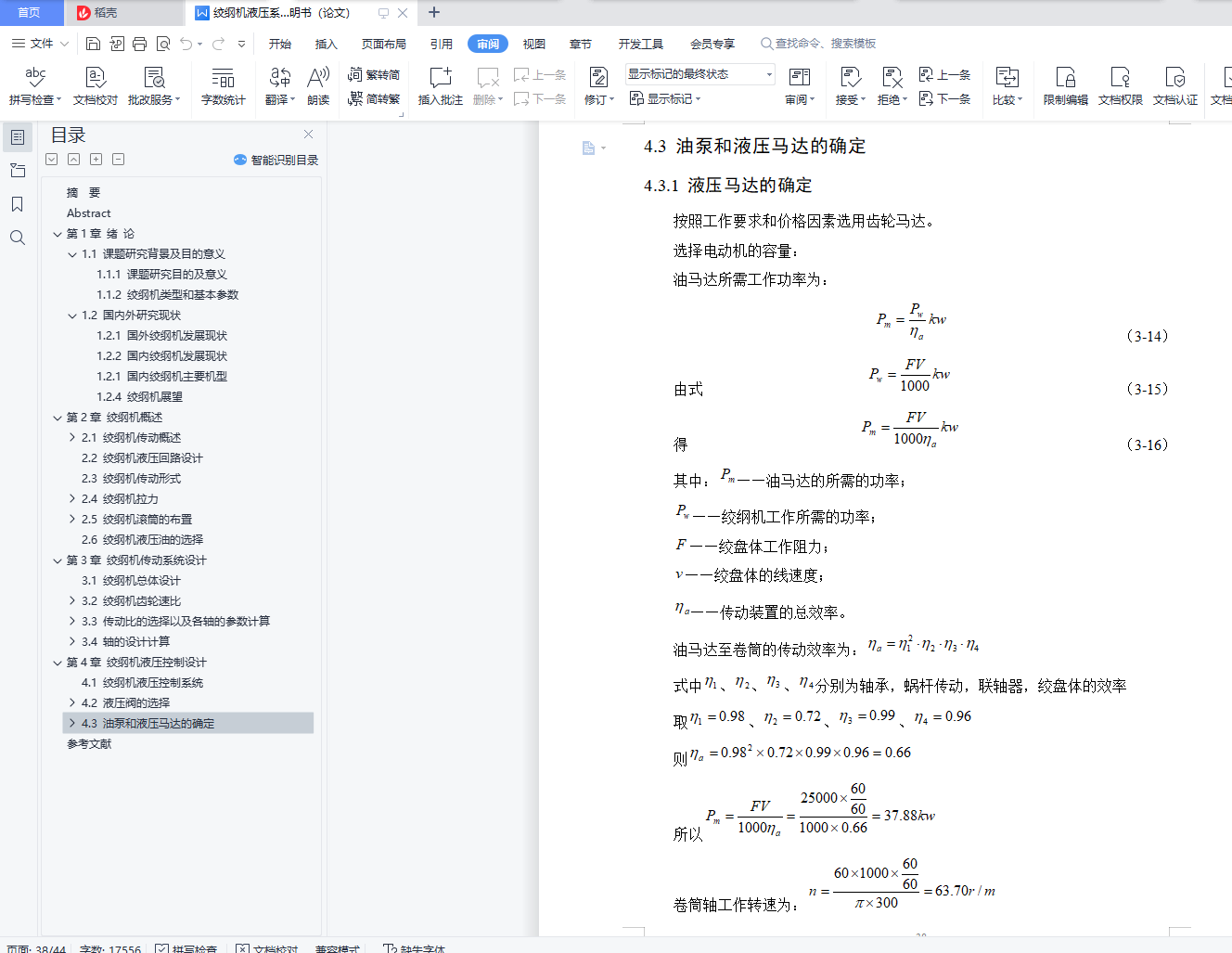 3.2 绞纲机齿轮速比