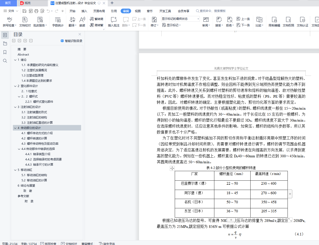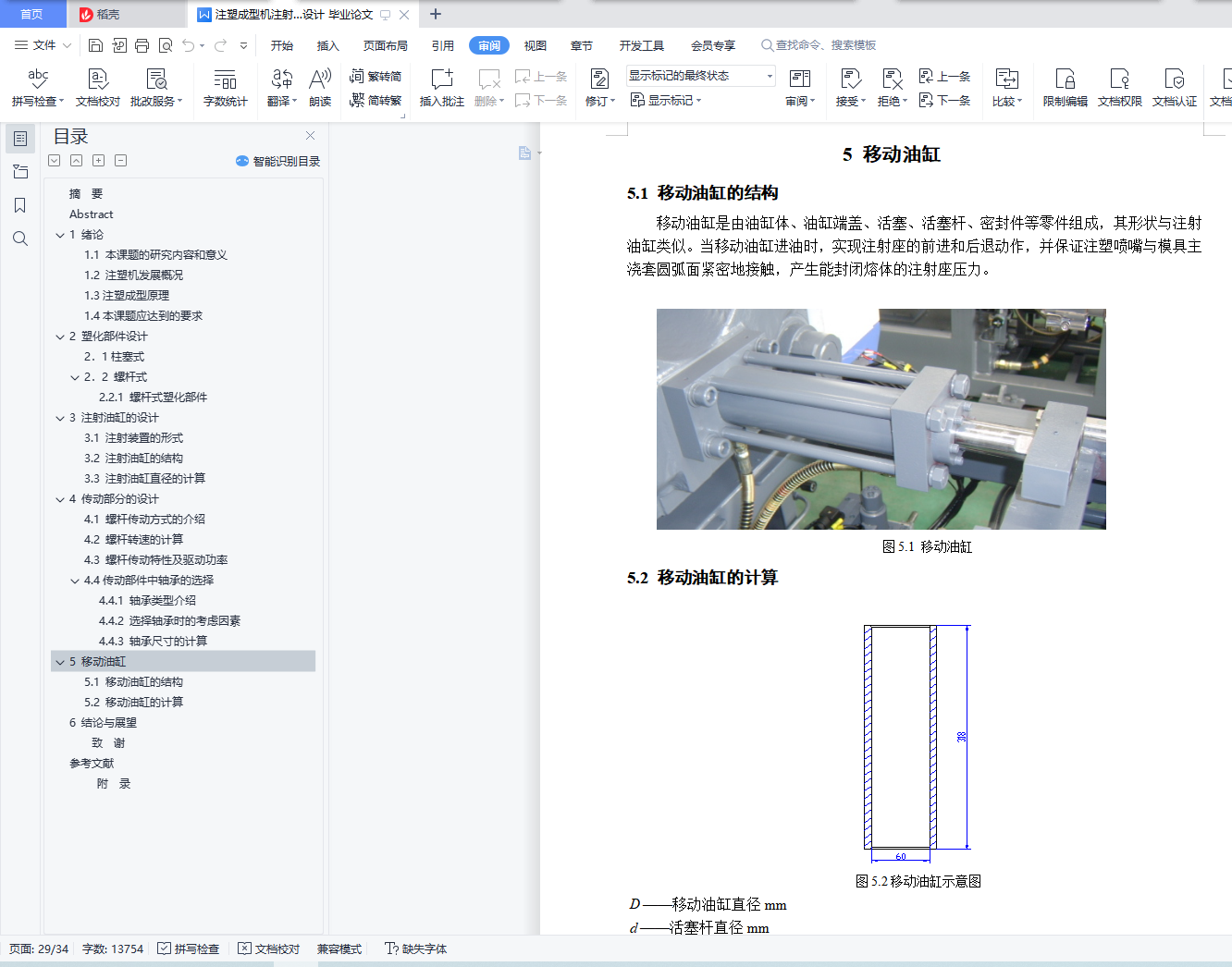 (3)介绍了注射油缸的设计,研究了注射油缸直径、活塞杆直径,包括对其尺寸的计算。