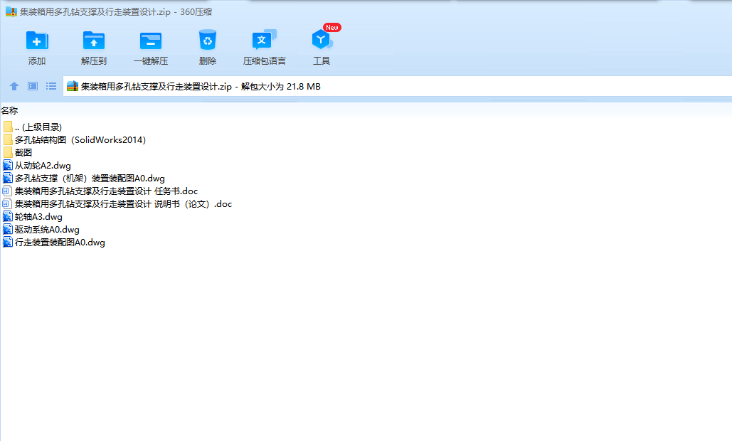 关键词:集装箱;多孔钻;支架;行走装置;Solidworks;CAD