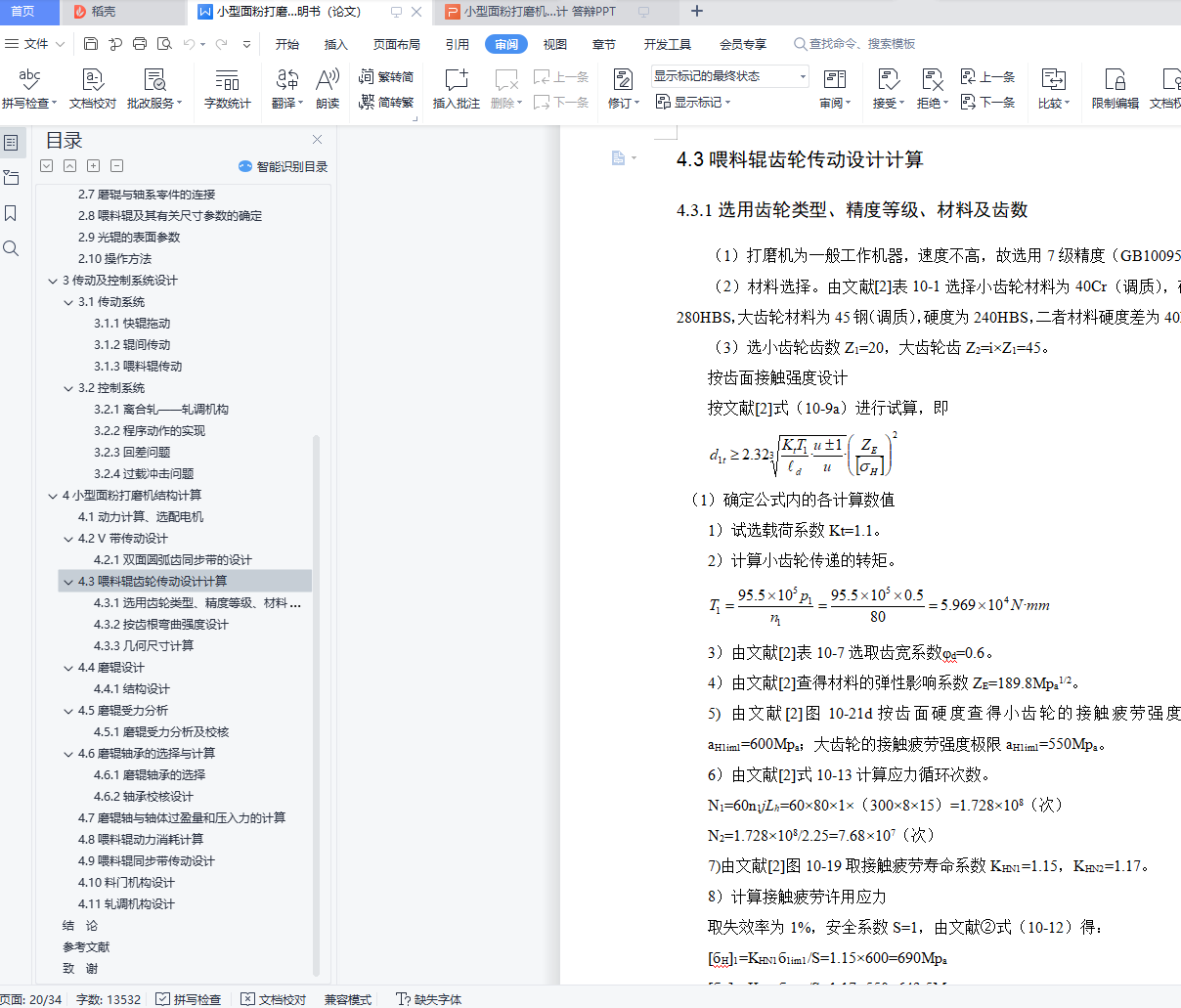4.3喂料辊齿轮传动设计计算