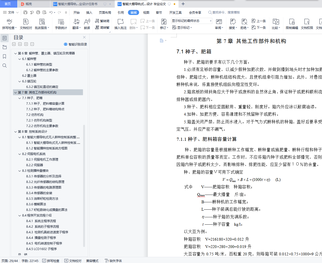 7.1.1种子、肥料箱容量计算