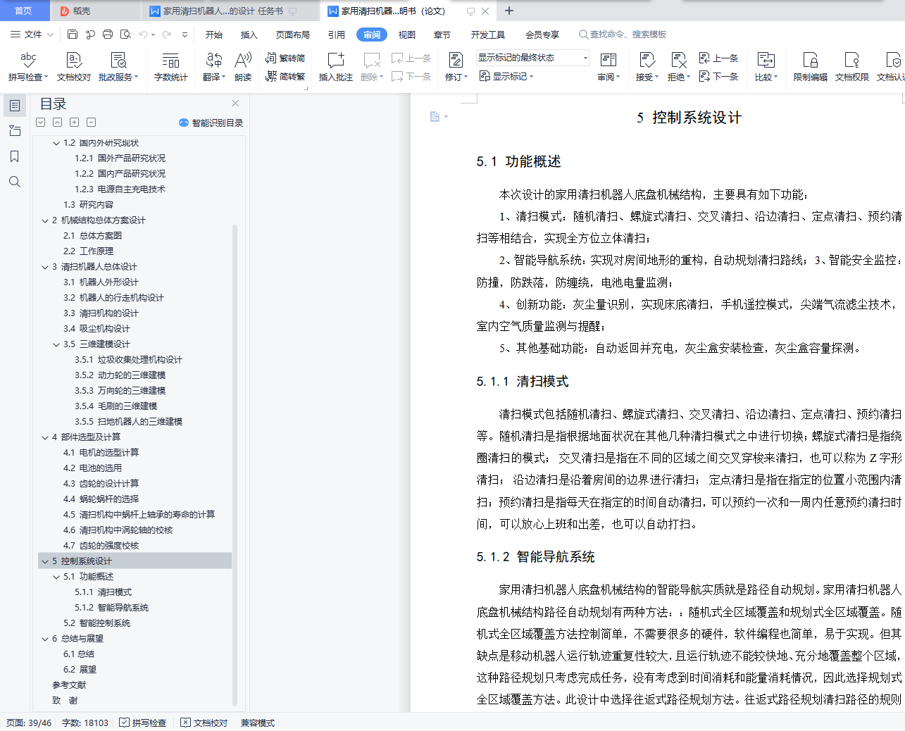 According to the requirements of no load, working load and power of the robot, the proper driving motor is selected, the principle of robot dust cleaning is studied, the multi-function structure of dust cleaning, cleaning and easy disassembly structure is designed, and the design and analysis of robot chassis structure is designed. The robot adopts the principle of unified action and coordinated control, realizes the movement of the household cleaning robot by driving the power wheel by the motor, and realizes the action of the household cleaning robot through the control of the central control system. Because it is the control of the central control system, the control is flexible and diverse. Through the controller to control the robot action, the robot cleaning, dust removal function.