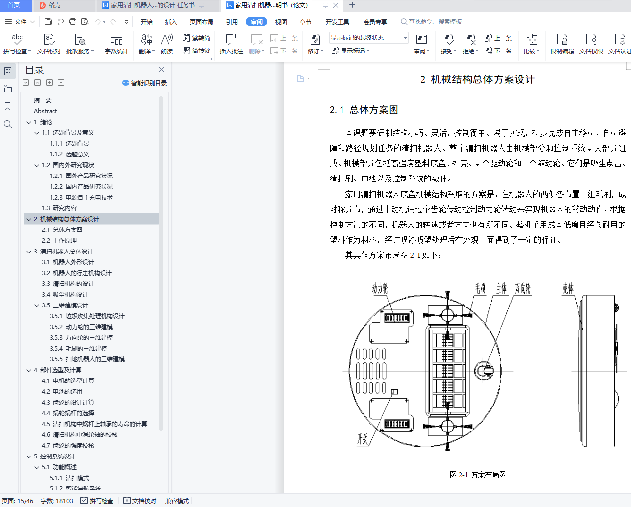 本次设计以家用的清扫机器人为研究对象,利用单片机控制机器人,使它完成相应的工作。家庭清扫机器人将行走机器人技术和吸尘器技术有效地融合起来,实现了室内环境全自动清扫,替代人们完成传统繁杂的人工清扫工作,在家中清扫过程中不需要人操作,省时,省力, 近年来已受到国内外研究人员的高度重视。作为智能移动机器人的一个特殊应用,从技术方面讲,家用清扫机器人底盘机械结构比较具体地体现了移动机器人的多项关键技术,具有较强的代表性。从结构方面对机器人底盘空间布局设计显得尤为必要,吸尘机构的设计、零部件的选择更关系到机器人本身性能的优越性,更具市场竞争力。